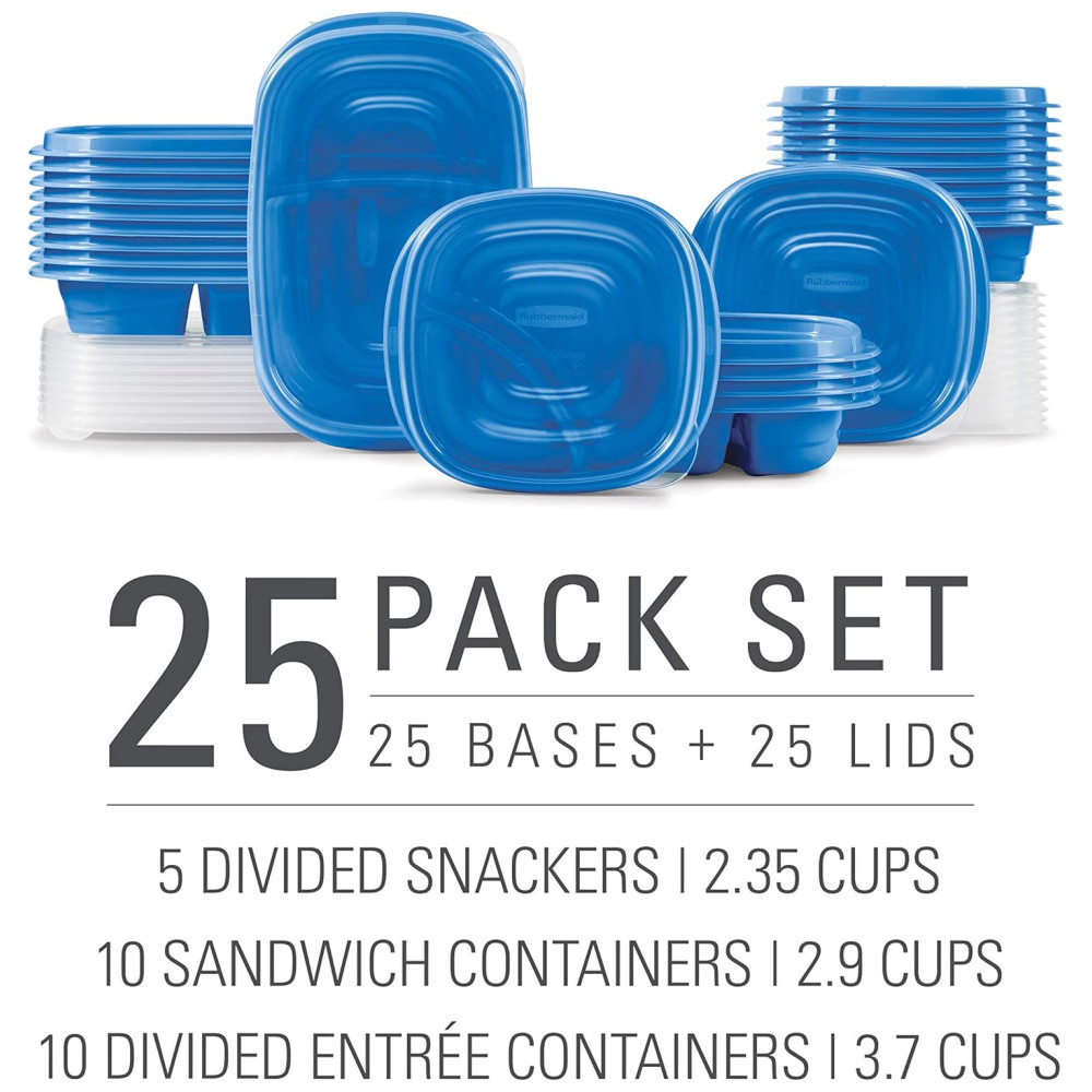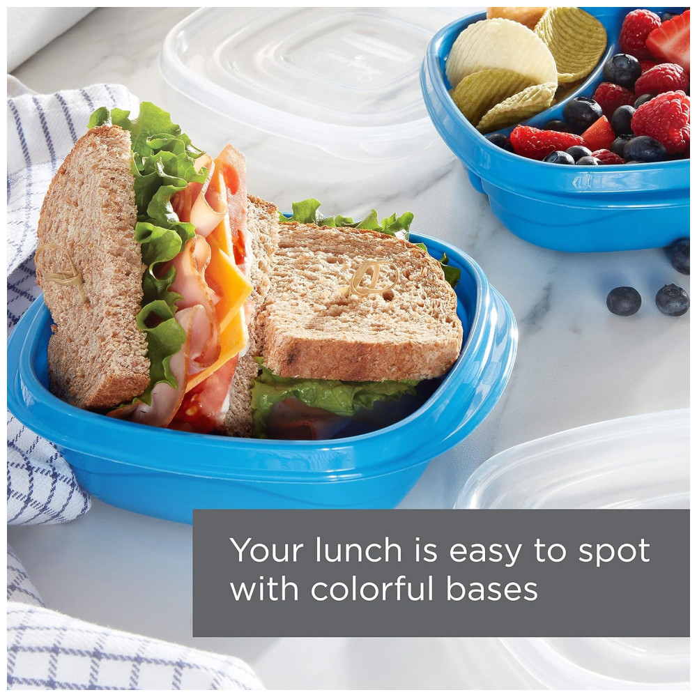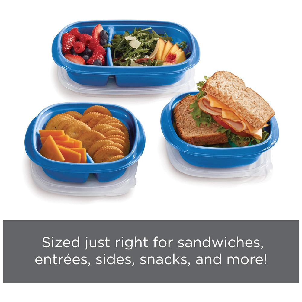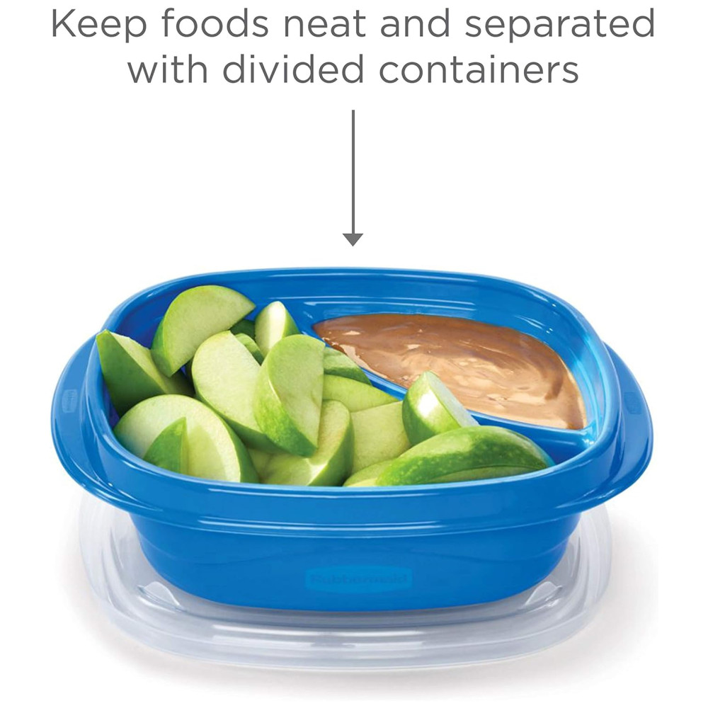 Os recipientes de zenamento de alimentos divididos da Rubbermaid são projetados para uma variedade de alimentos, incluindo entradas, sanduíches, acompanhamentos e lanches