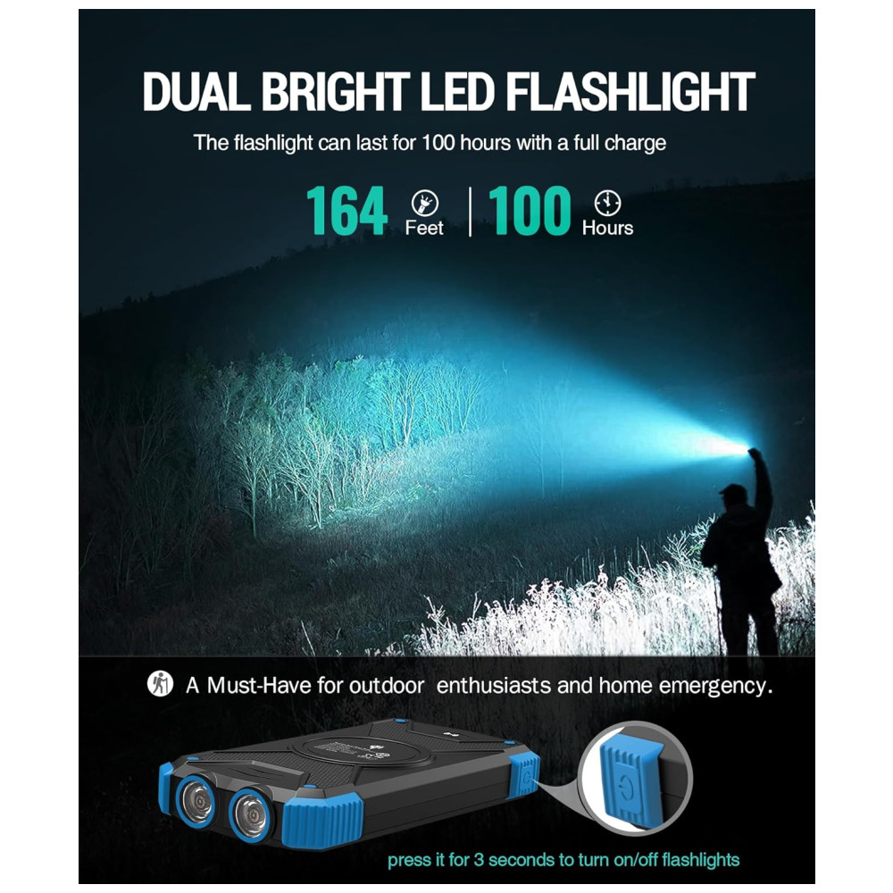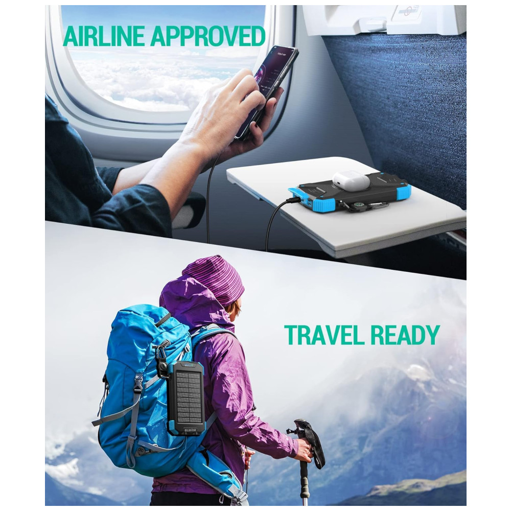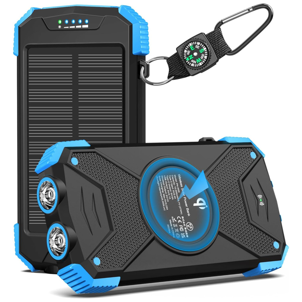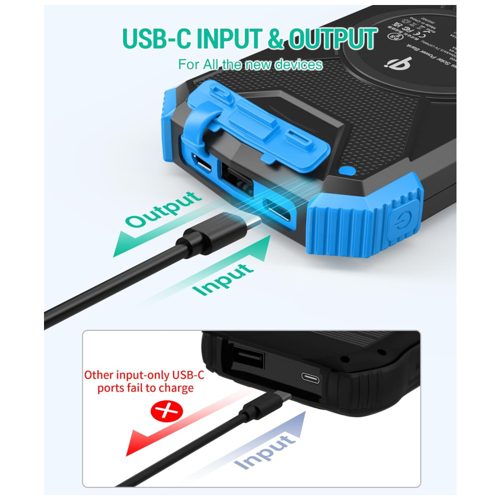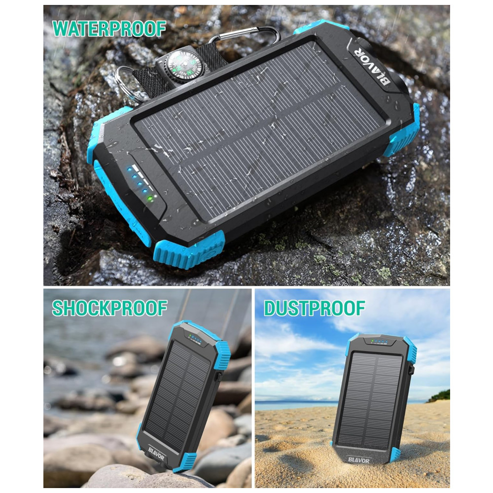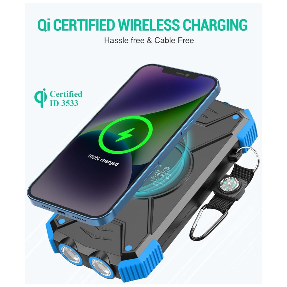 Powerbank Carregador Sem Fio 10.000mAh Bateria Externa Solar LED Bússola Vamping Praia Prova Dágua Chuva