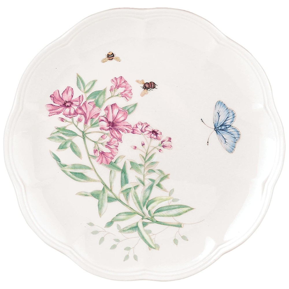 Prato Decorativo 22 cm com Tema de Flores e Borboletas Formato Redondo e Material de Porcelana LENOX Branco