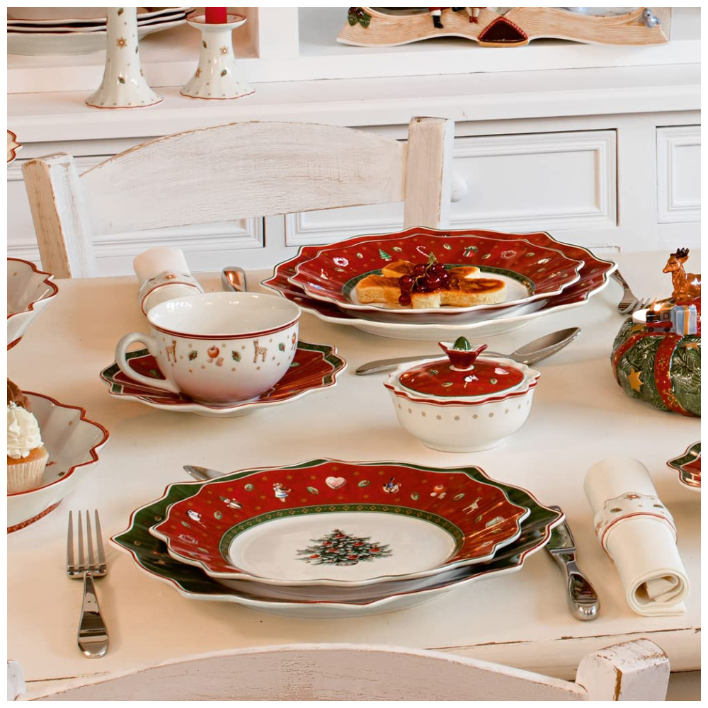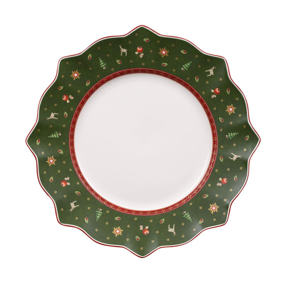Prato Natal para Jantar de 27 cm Elegância e Praticidade em Sua Mesa com Formato Redondo e Material de Porcelana Premium Rosenthal Branco e Verde
