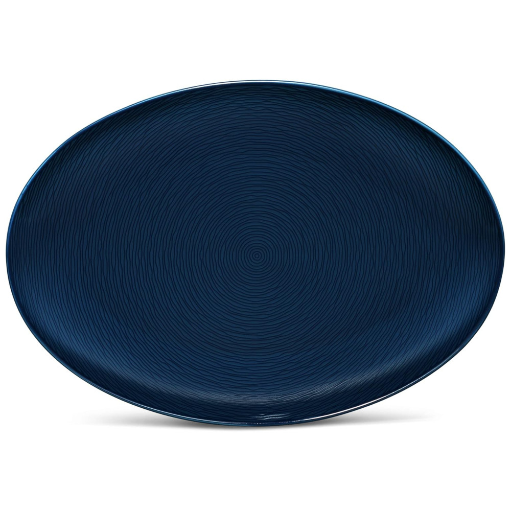 Prato Oval 40 cm em Porcelana 01 Unidade Noritake NoN Swirl Azul