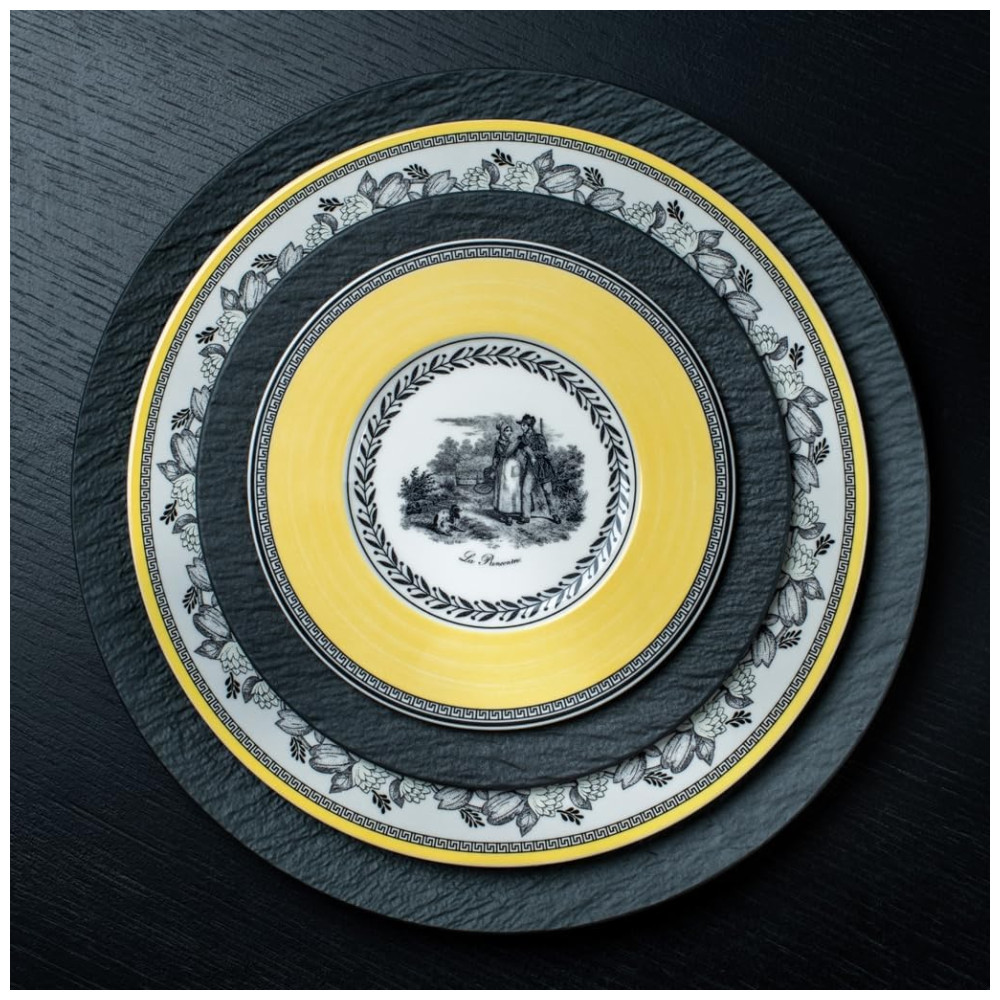 Prato para Aperitivo 15 cm Elegância e Praticidade em Sua Mesa com Formato Redondo e Material de Porcelana Premium Villeroy Boch Branco Cinza e Amarelo