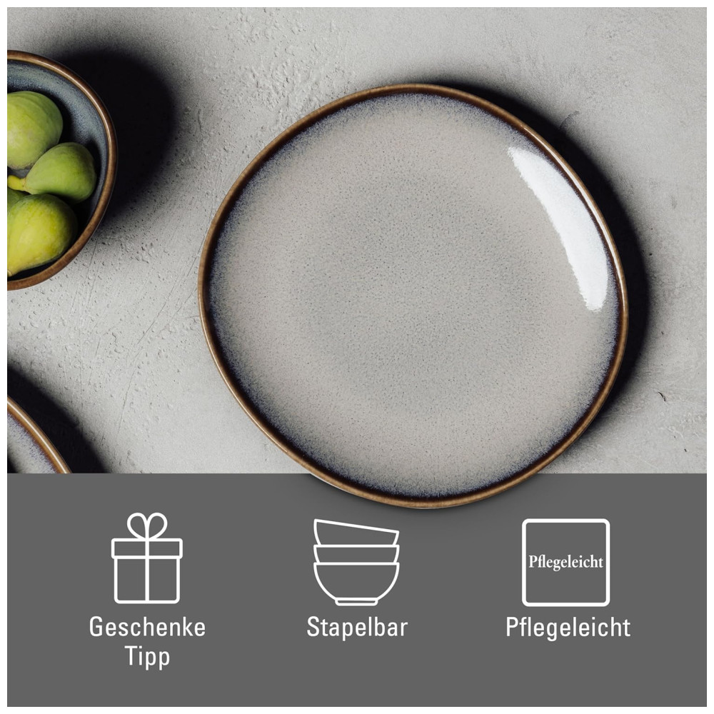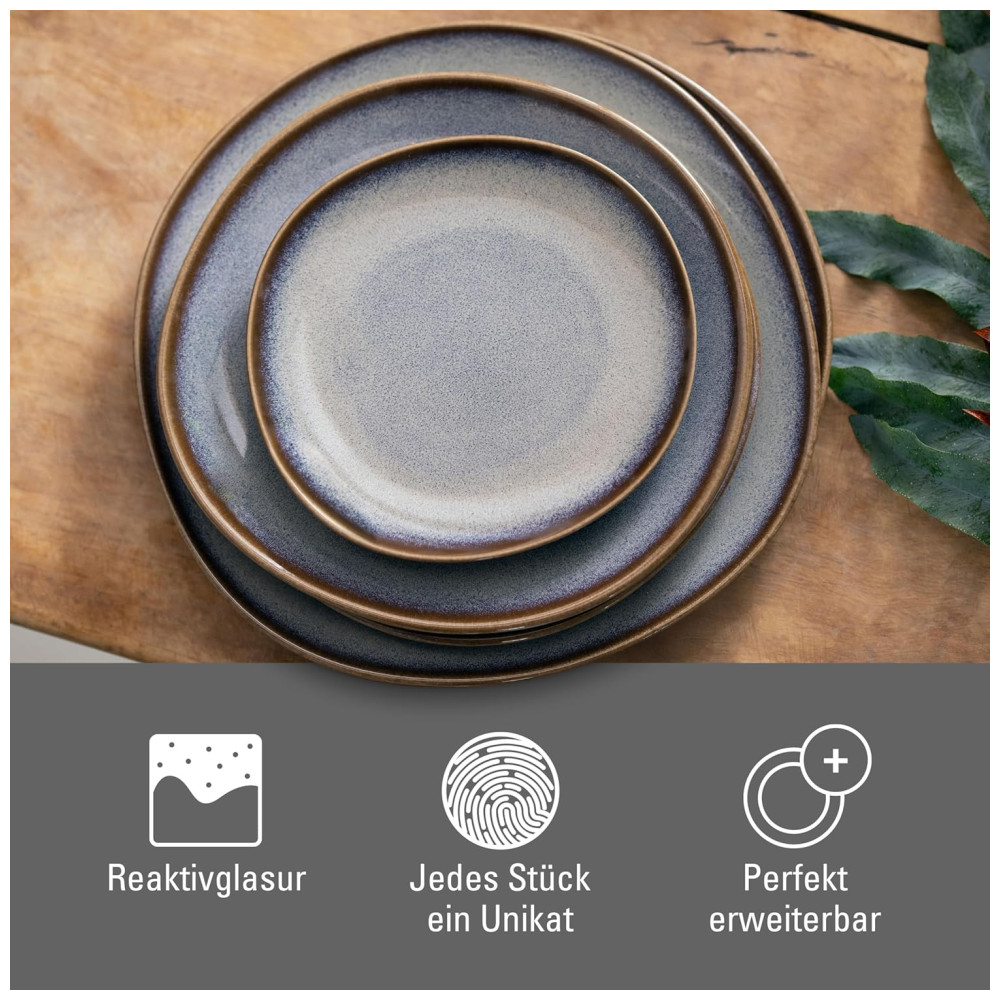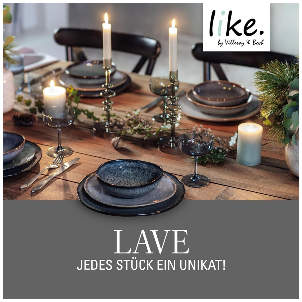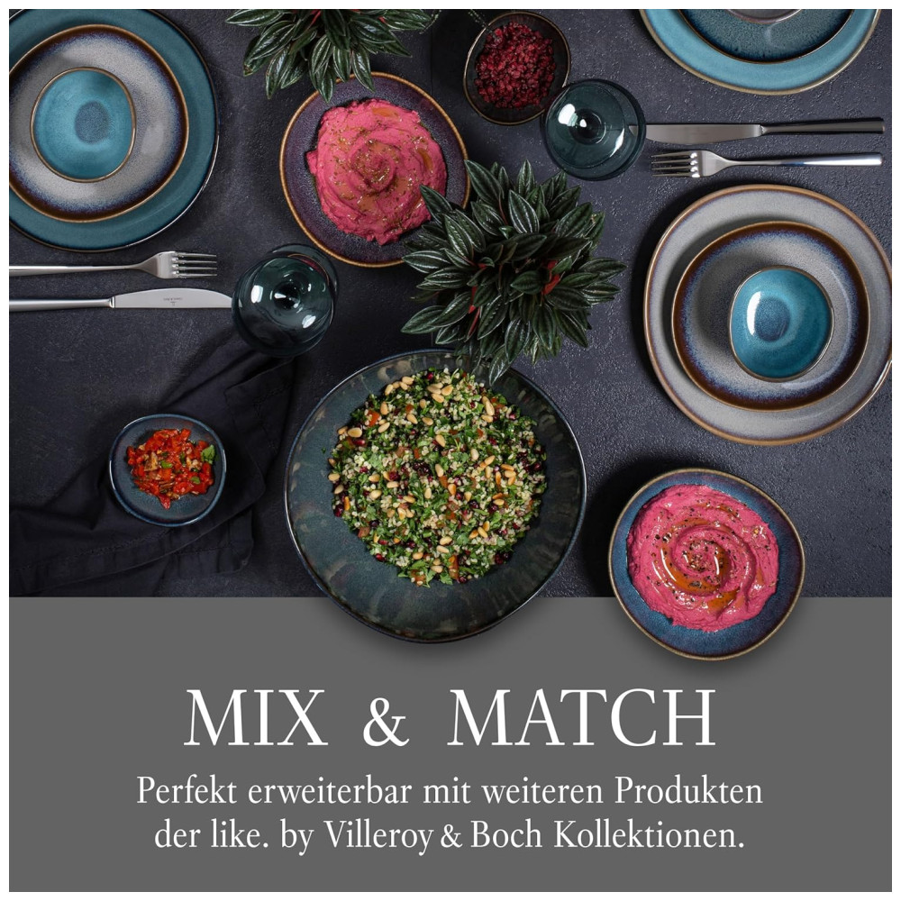 Cada prato é único, já que um esmalte especial cria diferentes efeitos de cor, tornando cada peça da coleção verdadeiramente singular. A coleção Villeroy Boch inclui uma variedade de xícaras, pratos, tigelas e travessas, proporcionando uma ampla gama de combinações.