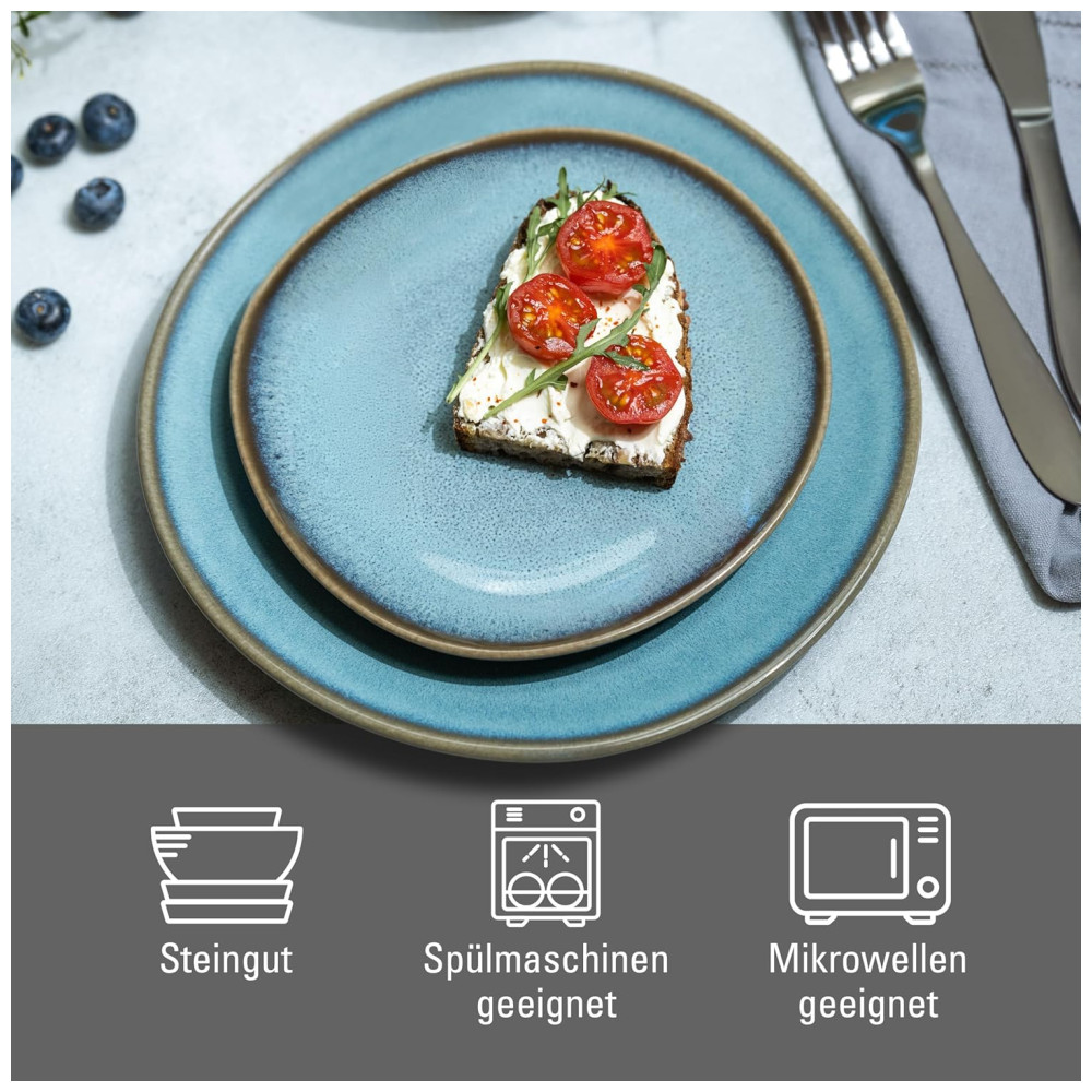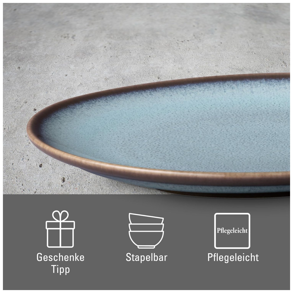 Este prato para aperitivo Lave turquesa da coleção Villeroy Boch é feito com alta qualidade em cerâmica de barro e apresenta um estilo excepcional. Cada prato é único, com um esmalte especial que cria diferentes efeitos de cor, tornando cada peça verdadeiramente singular.