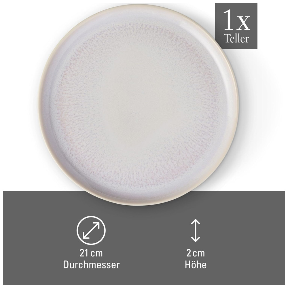 Cada item é único, graças ao esmalte reativo especial que cria diferentes efeitos de cor, tornando-os verdadeiramente ecléticos e especiais. O prato de salada Crafted Cotton, com dimensões de 21 cm, é feito de porcelana premium na cor bege algodão, proporcionando uma pegada confortável e agradável.