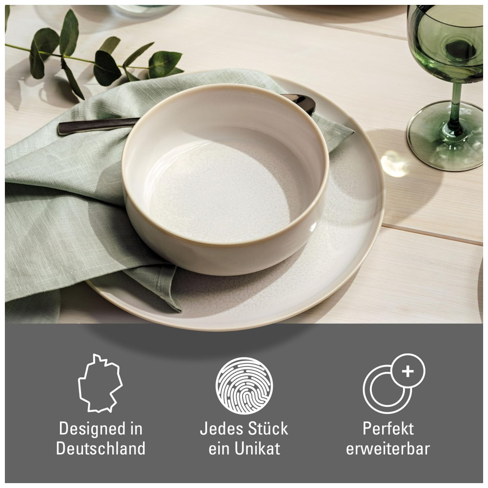 A coleção Crafted Cotton da Villeroy Boch apresenta um visual artesanal em cerâmica, com influências escandinavas e uma estética boho simplificada. Esta coleção minimalista é caracterizada por formas arredondadas e materiais naturais, permitindo a mistura e combinação de peças de maneira harmoniosa.