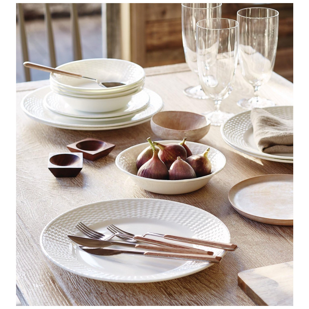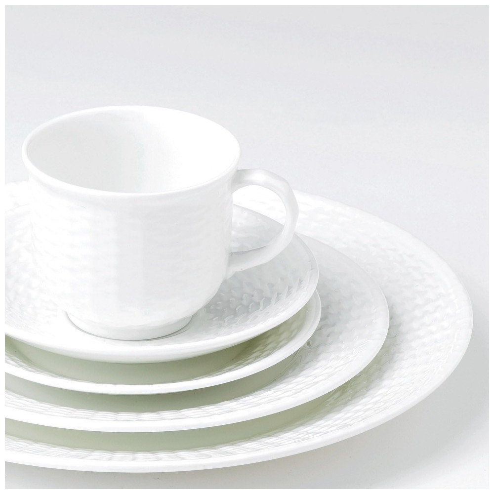 Este prato de salada da coleção Nantucket da Wedgwood é inspirado nas cestas meticulosamente tecidas à mão de Nantucket, Massachusetts, no final do século XIX. Feito de porcelana branca pura, o prato apresenta um delicado motivo de trama de cesta em relevo na borda, refletindo a elegância da cestaria nos detalhes de design desta coleção.