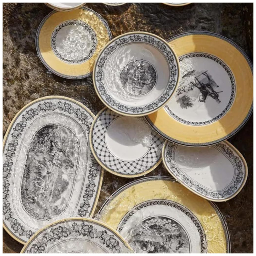 Prato para Salada de 22 cm Mais Elegância em Sua Mesa com Formato Redondo e Material de Porcelana Premium Villeroy Boch Branco Cinza e Amarelo