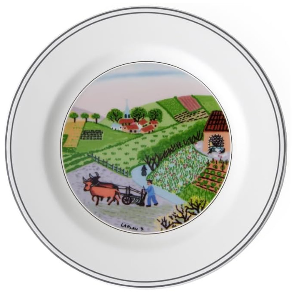 Este clássico prato de pão apresenta uma encantadora paisagem pitoresca, sendo perfeito para servir fatias de pão, baguetes, pãezinhos pequenos, além de sobremesas ou saladas. Com um formato prático e visual atraente, ele é ideal para buffets e pode ser facilmente transportado com uma mão. Os pratos são empilháveis, otimizando o espaço de armazenamento.