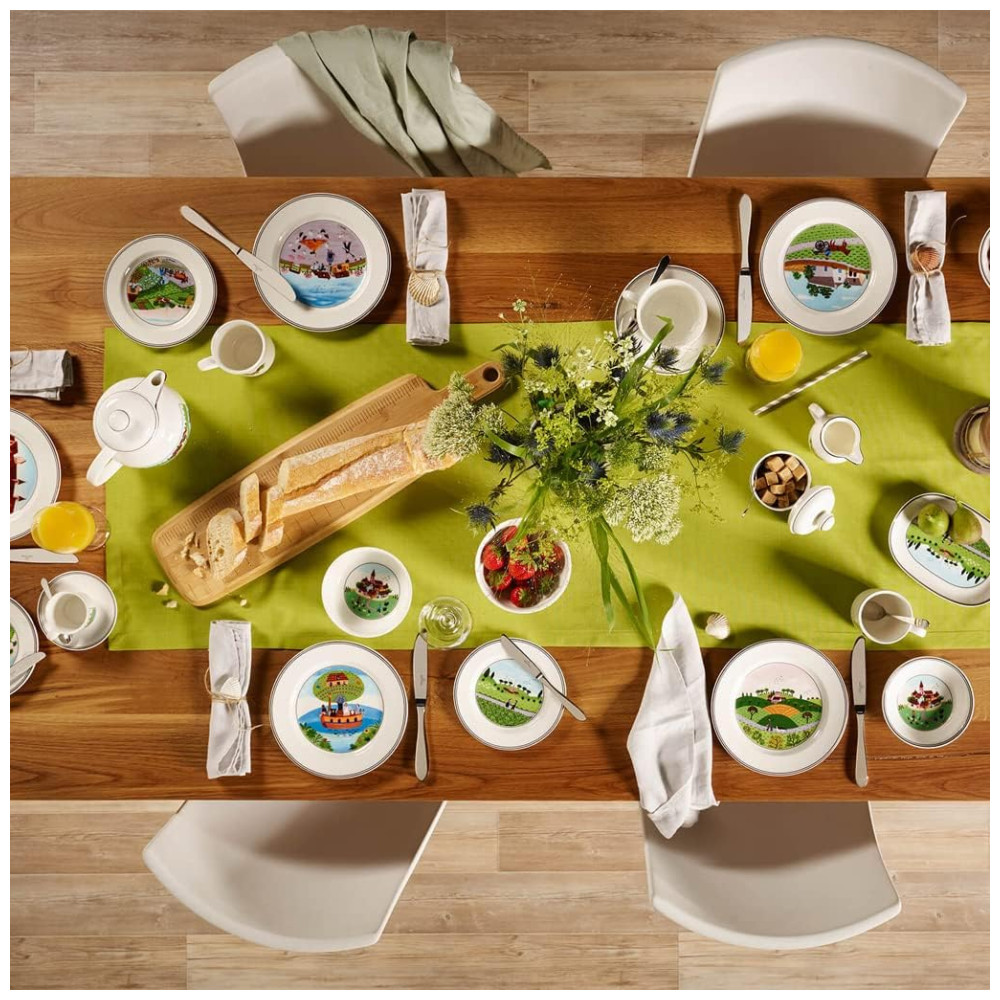 Feito de porcelana premium de alta qualidade na Alemanha, o prato pode ser lavado na máquina de lavar louça e utilizado no micro-ondas, oferecendo praticidade no dia a dia.