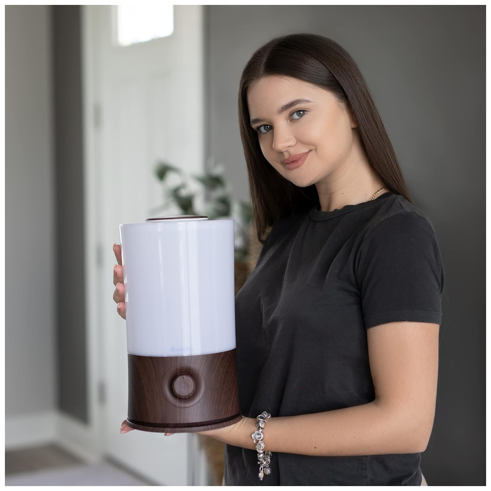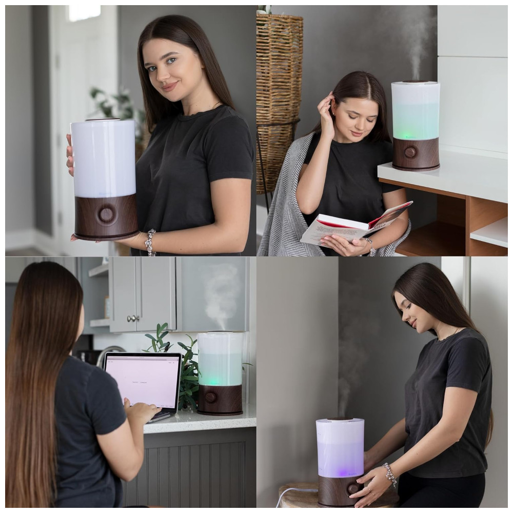 Grande umidificador feito com materiais de primeira qualidade Além de seu uso em aromaterapia, este difusor de óleo essencial também funciona como umidificador. Use o para melhorar a qualidade do ar e da atmosfera de sua casa, encobrir o cheiro de animais de estimação ou fumar e proteger sua família do ar excessivamente seco, microorganismos, alérgenos, poeira e muito mais