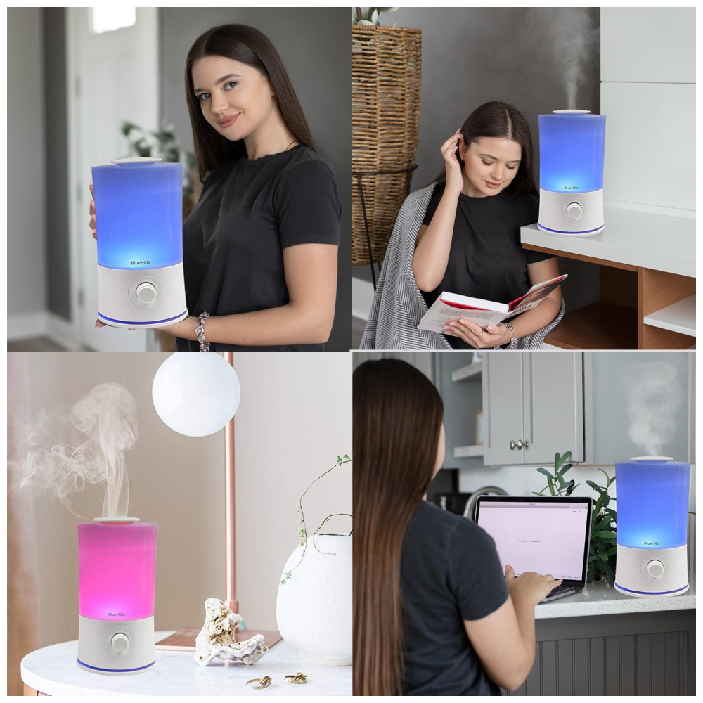 Premium Umidificador Ultrassônico Portátil 2L com Aromaterapia e 7 Luzes LED até 40H 110v BLUEHILLS Branco