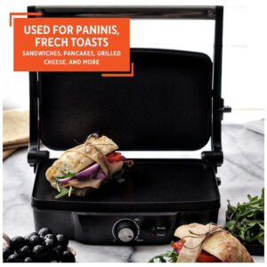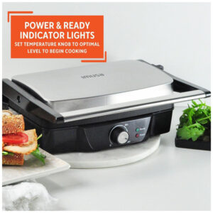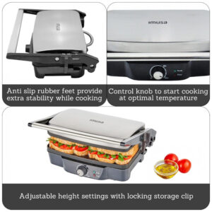 A Prensa de Panini IMUSA é ideal para preparar refeições rápidas e fáceis. Feita em alumínio fundido durável, com placas de cozimento antiaderentes e um elegante exterior em aço inoxidável, que facilita o cozimento e a limpeza. A Prensa de Panini IMUSA possui um tamanho de 28cm x 17cm. O botão de ajuste de temperatura, junto com as luzes indicadoras de ligado e pronto, garantem que você comece a cozinhar na temperatura ideal para resultados deliciosos. As configurações de altura ajustáveis, juntamente com um clipe de armazenamento travável, permitem que você personalize sua experiência culinária, adaptando-se a vários ingredientes e espessuras. A Prensa de Panini IMUSA é perfeita para criar paninis, rabanadas, sanduíches, panquecas, queijos grelhados e muito mais, tornando-a uma companheira ideal para almoços, jantares, lanches e muito mais. Confie na Prensa de Panini IMUSA como sua ajudante de cozinha. Ela certamente se tornará a companheira querida da sua cozinha, simplificando e aprimorando suas empreitadas culinárias. COMPACTA E CONVENIENTE Medindo 28cm x 17cm, esta prensa de panini cabe perfeitamente em qualquer balcão de cozinha, oferecendo uma solução prática para espaços compactos, garantindo uma área de cozimento ampla para refeições deliciosas. ESTILOSA E DURÁVEL Feita de placas de alumínio fundido para distribuição de calor uniforme e desempenho duradouro, esta prensa de panini possui placas antiaderentes superior e inferior com um exterior de aço inoxidável polido para liberação fácil de alimentos e um visual moderno. FÁCIL DE USAR Equipada com um botão de ajuste de temperatura, luzes indicadoras de ligado e pronto para garantir o cozimento na temperatura ideal, esta prensa de panini inclui configurações de altura ajustáveis com um clipe de armazenamento travável para culinária versátil e fácil armazenamento, enquanto os pés de borracha fornecem estabilidade extra durante o uso, evitando escorregões e movimentos. APARELHO MULTIFUNCIONAL Perfeito para preparar paninis, rabanadas, sanduíches, panquecas, queijos grelhados e mais. FERRAMENTA DIÁRIA ESSENCIAL Adequada para preparar almoços, jantares, lanches e além, esta prensa de panini é cuidadosamente embalada em uma caixa de presente, perfeita para presentear em qualquer ocasião.