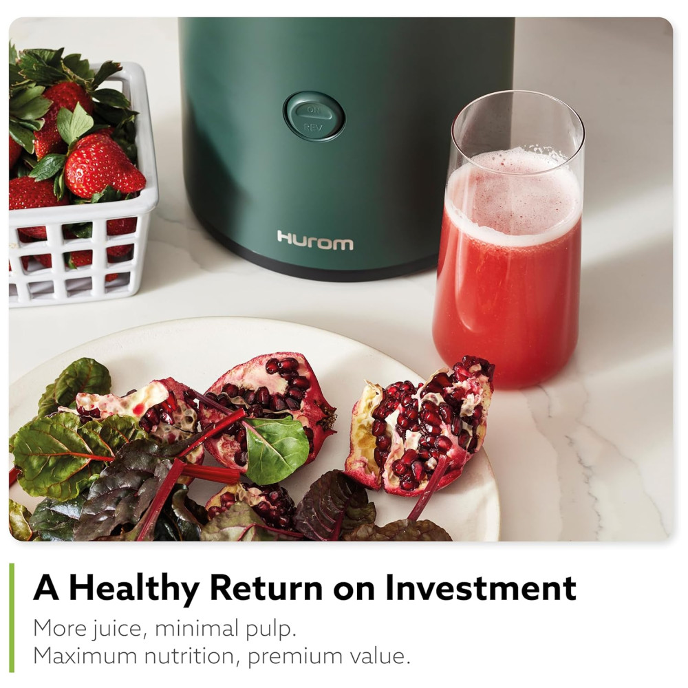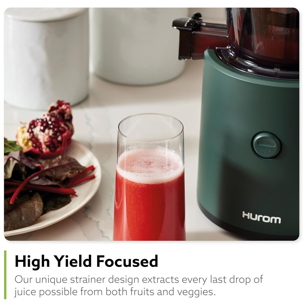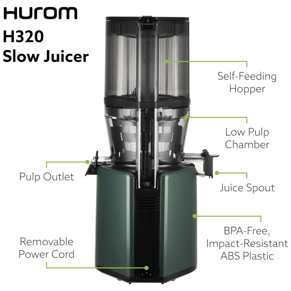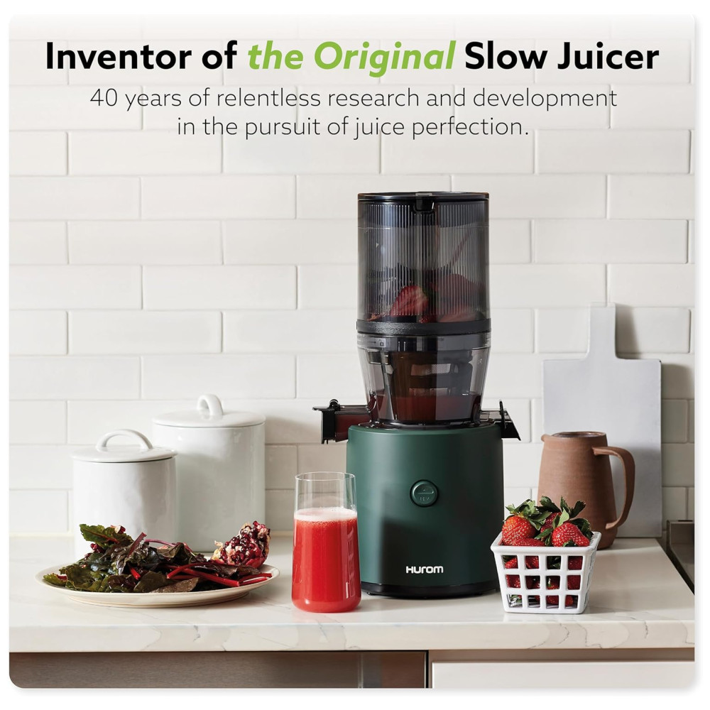 Prensa de Sucos Hurom H320 Verde Escuro e Verde Kale: Máquina de Suco a Frio para Frutas e Vegetais Livre de BPA Alta Produção