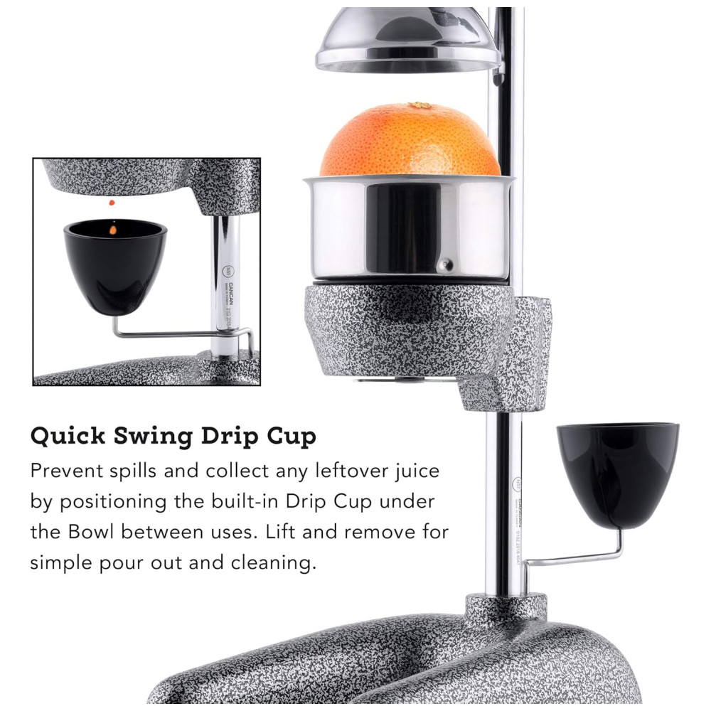 JUICER DE CITRINOS DE AÇO INOXIDÁVEL Este espremedor de frutas cítricas possui uma peneira e tigela de aço inoxidável para maior durabilidade Seu suco nunca entra em contato com alumínio ou plástico