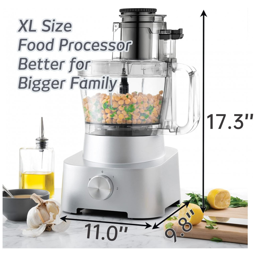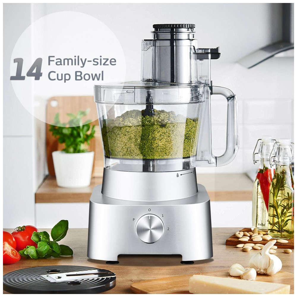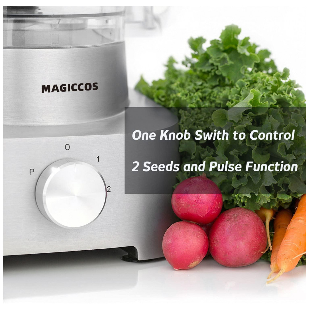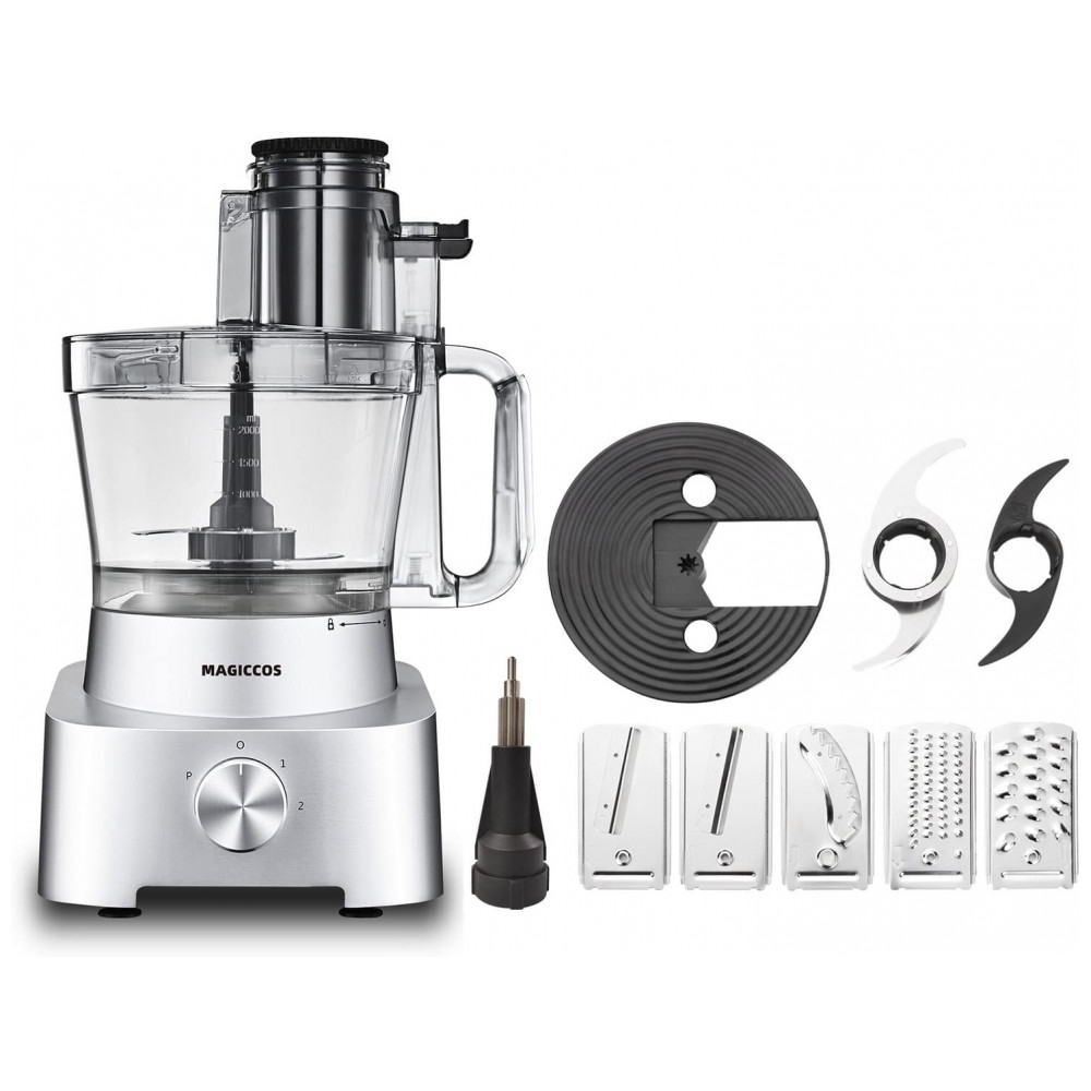 Processador de Alimentos 14 xícaras com 2 Velocidades e Acessórios 110V 800W Magiccos Prata