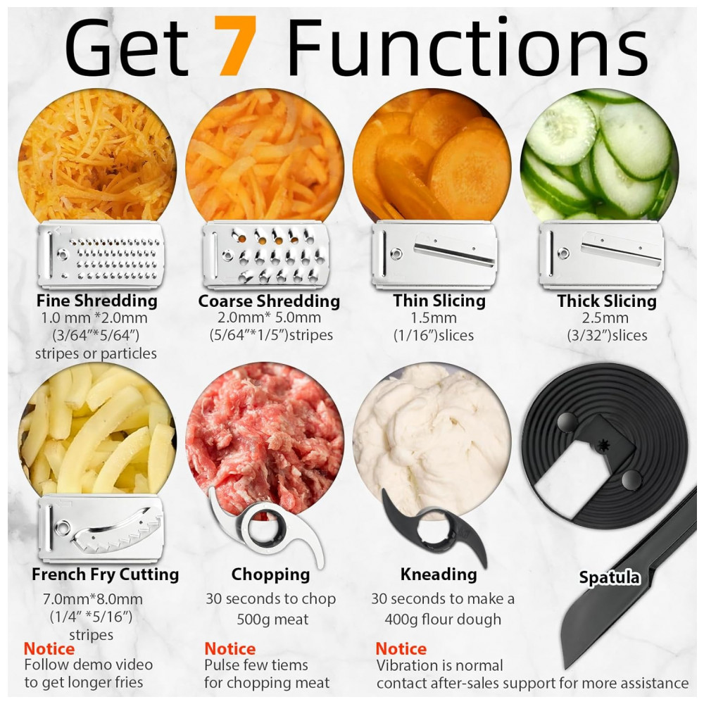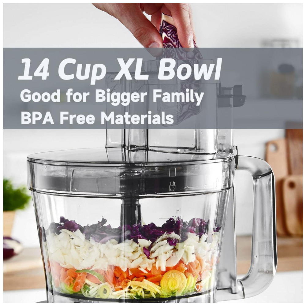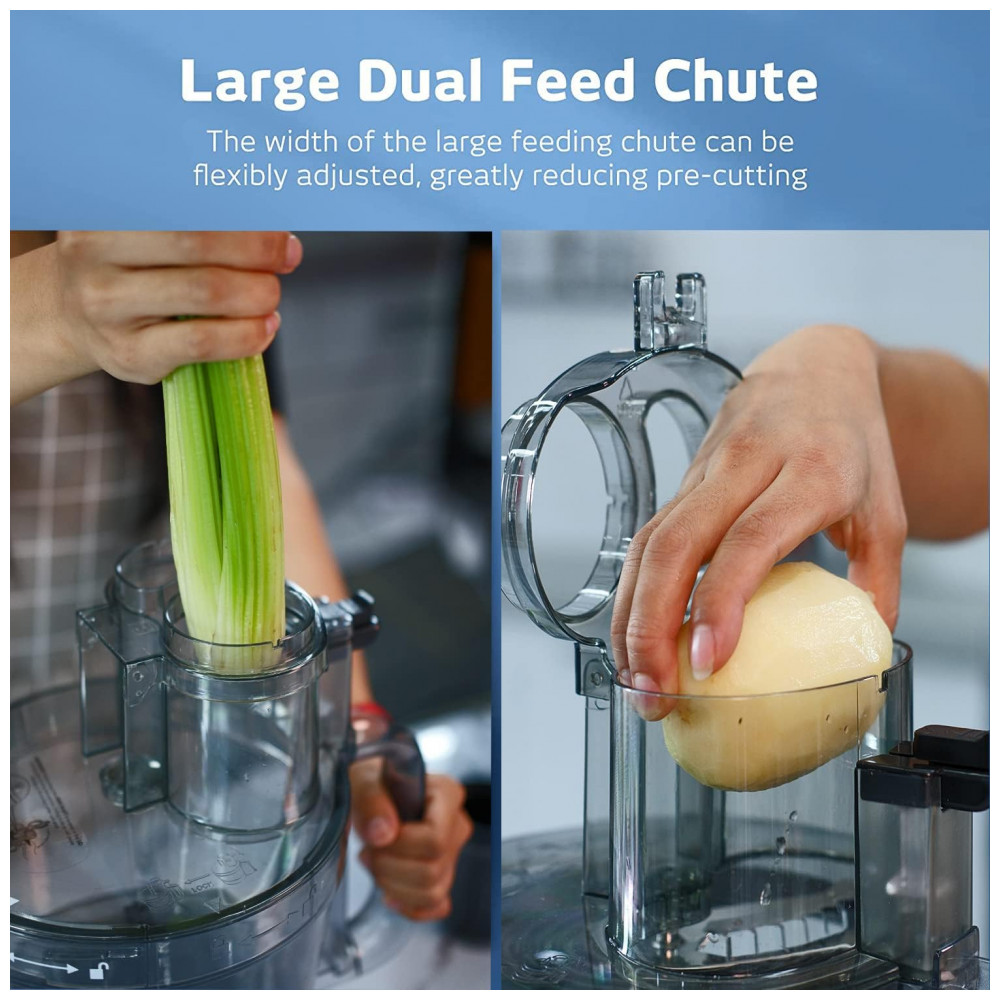 Grande calha de alimentação O processador de alimentos Magiccos vem com uma calha de alimentação grande, que é suficiente para batatas ou tomates de tamanho médio e um grande bloco de queijo, você pode colocar alimentos mais longos e não precisa cortá los em algumas seções.