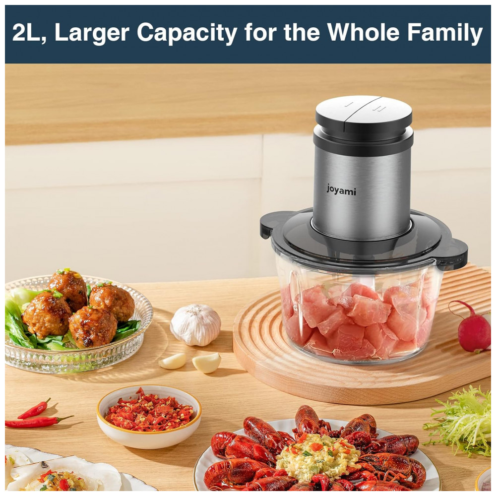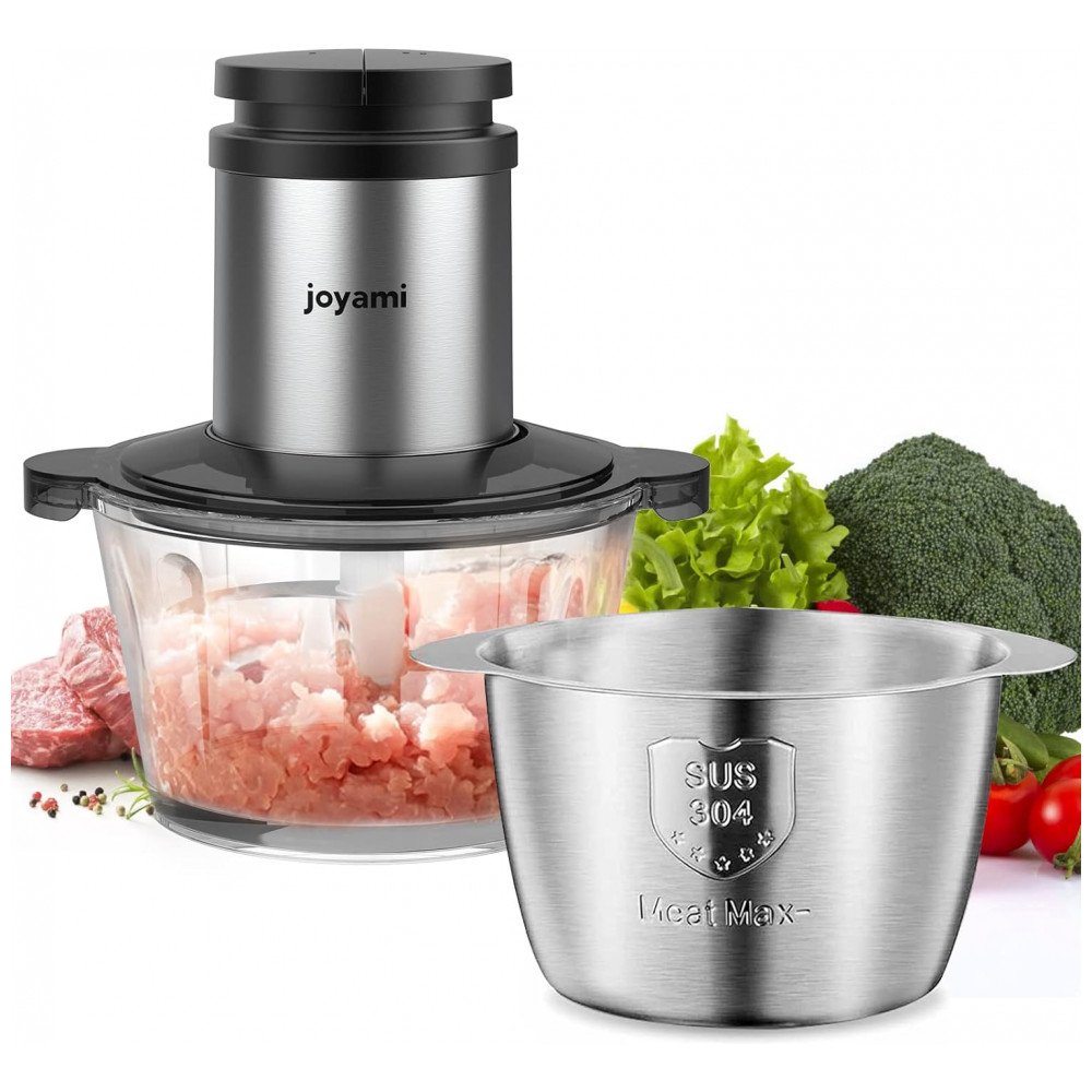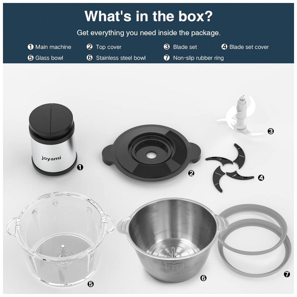 GRANDE CAPACIDADE : O processador de alimentos JOYAMI tem capacidade para 8 xícaras e vem com uma tigela de aço inoxidável e uma de vidro. É ótimo para famílias e oferece versatilidade no preparo dos alimentos.