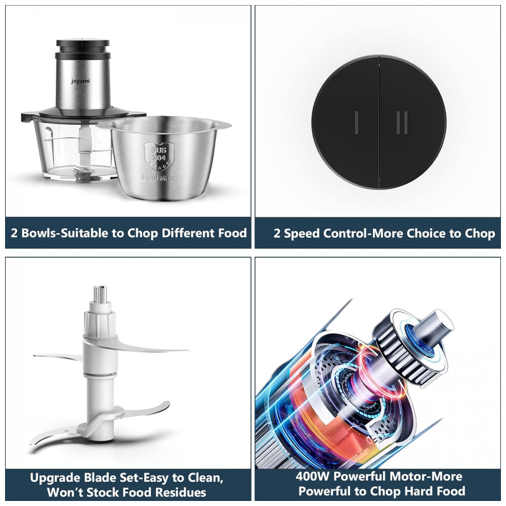 Processador de Alimentos até 8 Xícaras com 2 Tigelas JOYAMI 110V 400W Preto