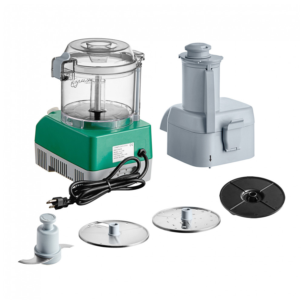Acompanha disco de fatiar e disco de ralar/triturar para versatilidade em corte, ralagem e purês. O design compacto desmonta para armazenamento em bancadas pequenas. Requer conexão elétrica de 120V monofásica a 60 Hz.