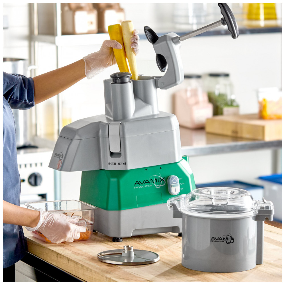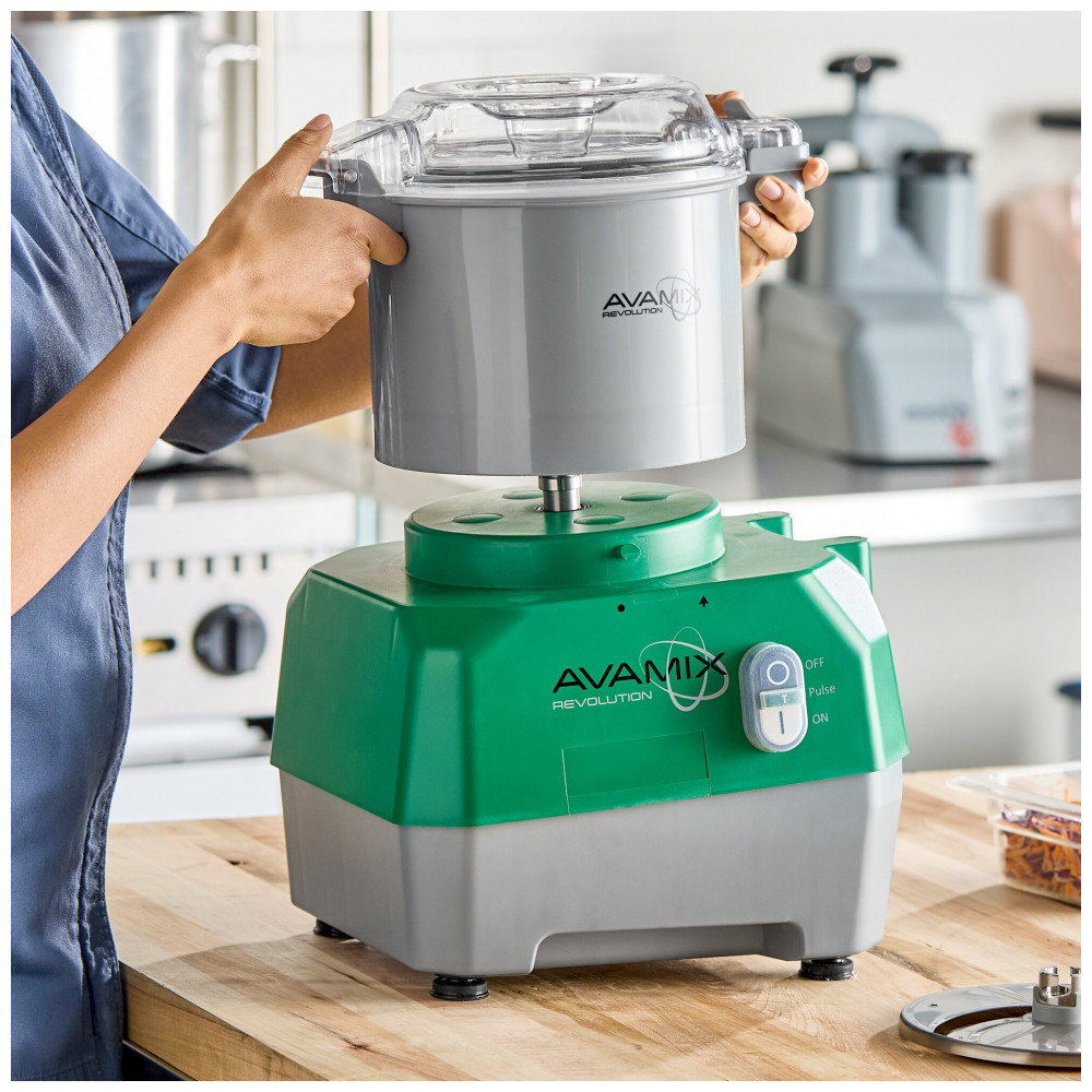 O AvaMix Revolution CFBB342DG é um processador de alimentos combinado com tigela de plástico cinza de 3 qt(2,8L) e acessório de alimentação contínua, equipado com motor de 1,01 CV para uso comercial. Processa grandes quantidades de frutas, vegetais, molhos e sopas, com lâminas e eixo de motor em aço inoxidável e base com pés antiderrapantes para estabilidade.