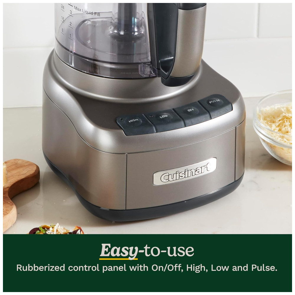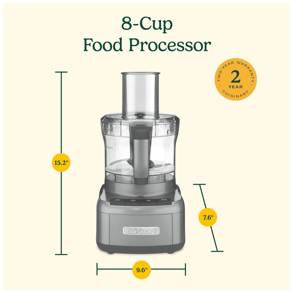 Cor Gunmetal Nome do estilo 8 Xic. Este processador de alimentos Cuisinart foi projetado para executar praticamente qualquer tarefa de preparação de alimentos exigida por uma receita. É grande o suficiente para cortar ingredientes para uma porção de salsa do tamanho de uma festa e poderoso o suficiente para transformar uma tigela de legumes em sopas saudáveis em segundos. Controles de touch pad emborrachados e discos de trituração e corte reversíveis tornam esse processador de alimentos o favorito dos cozinheiros domésticos criativos Cuisinart 8 xícara de processador de alimentos, prata