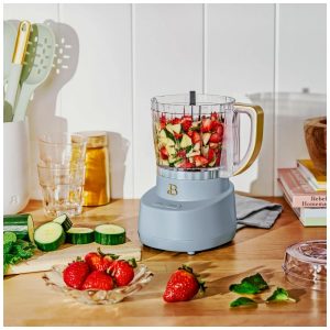 O processador de alimentos compacto Beautiful 3-Cup Food Chopper foi desenvolvido para tarefas rápidas de corte, mistura e trituração em pequenas porções, com capacidade de 3 xícaras em tigela plástica livre de BPA e motor de 250W. As lâminas em aço inoxidável e o acionamento por toque com função de pulso permitem ajustar a textura dos alimentos para preparos como temperos, molhos, pastas, salsas e porções menores de ingredientes, em um corpo com base antiderrapante e tampa com proteção contra respingos.