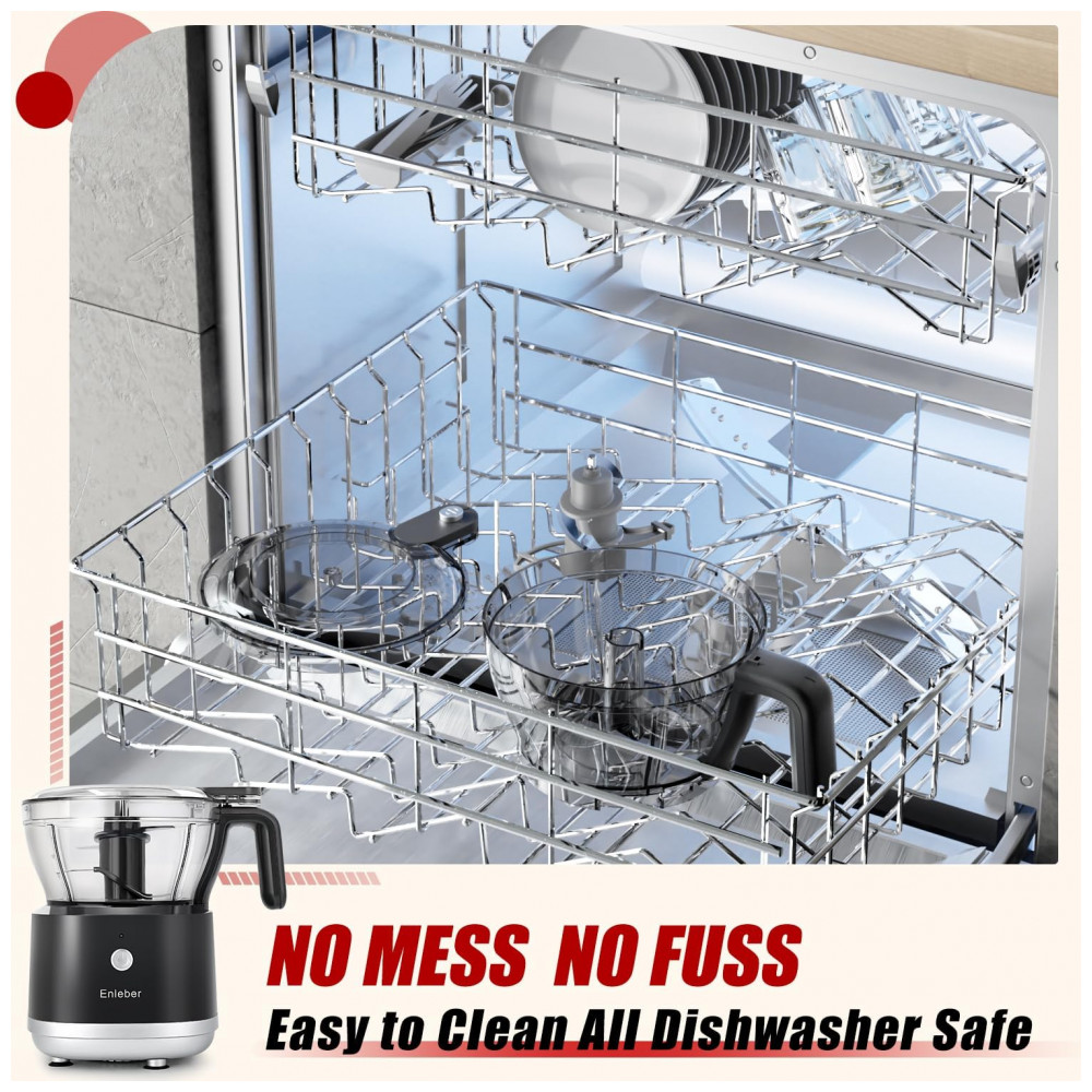 O processador de alimentos Enleber ZLJ002W é um mini processador elétrico compacto com tigela de aproximadamente 1 litro (4,5 xícaras), indicado para picar, fatiar, triturar, moer e fazer purês em pequenas porções. O motor em cobre de 200W processa até cerca de 900 g de ingredientes em poucos segundos, incluindo carnes, legumes, nozes e preparos para papinhas e alimentos de pets.