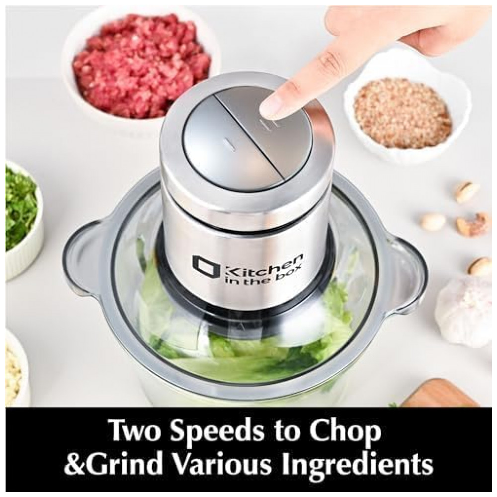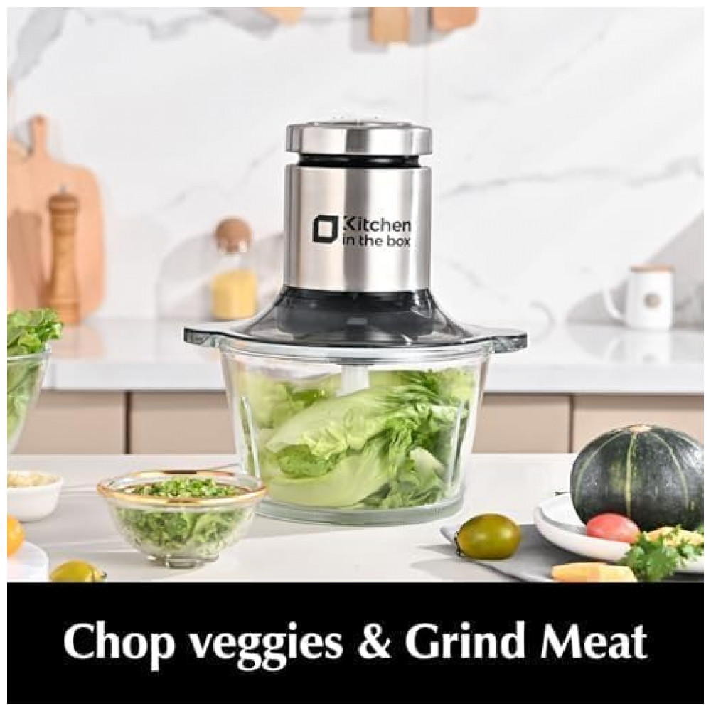 Processador de Alimentos Kitchen in the box 2L Tigela de Vidro 400W 2 Velocidades Picador de Carnes e Legumes 110V