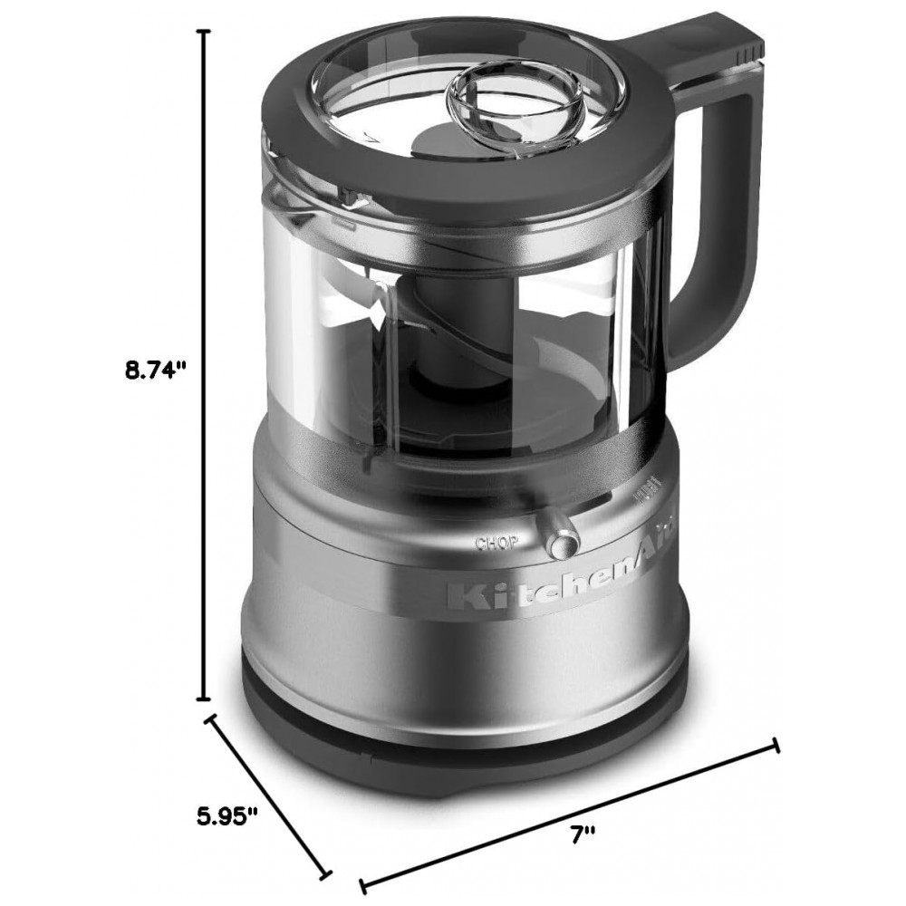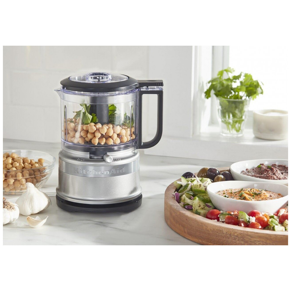Processador de alimentos mini KitchenAid 35 xícaras prata com 2 velocidades função pulsar e tigela com bico vertedor 110V