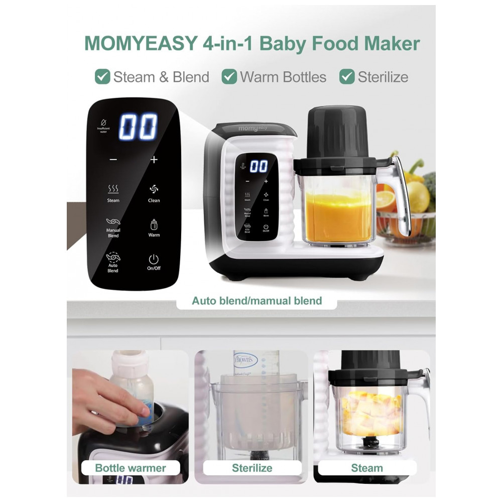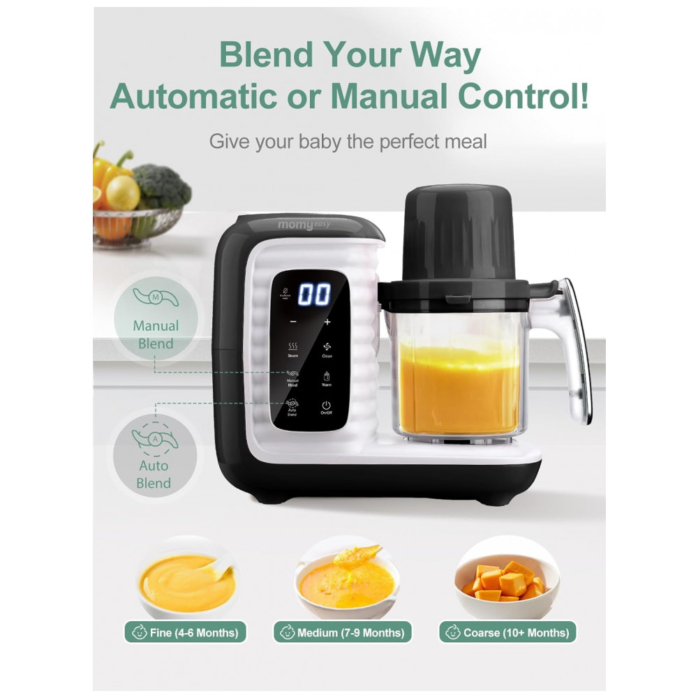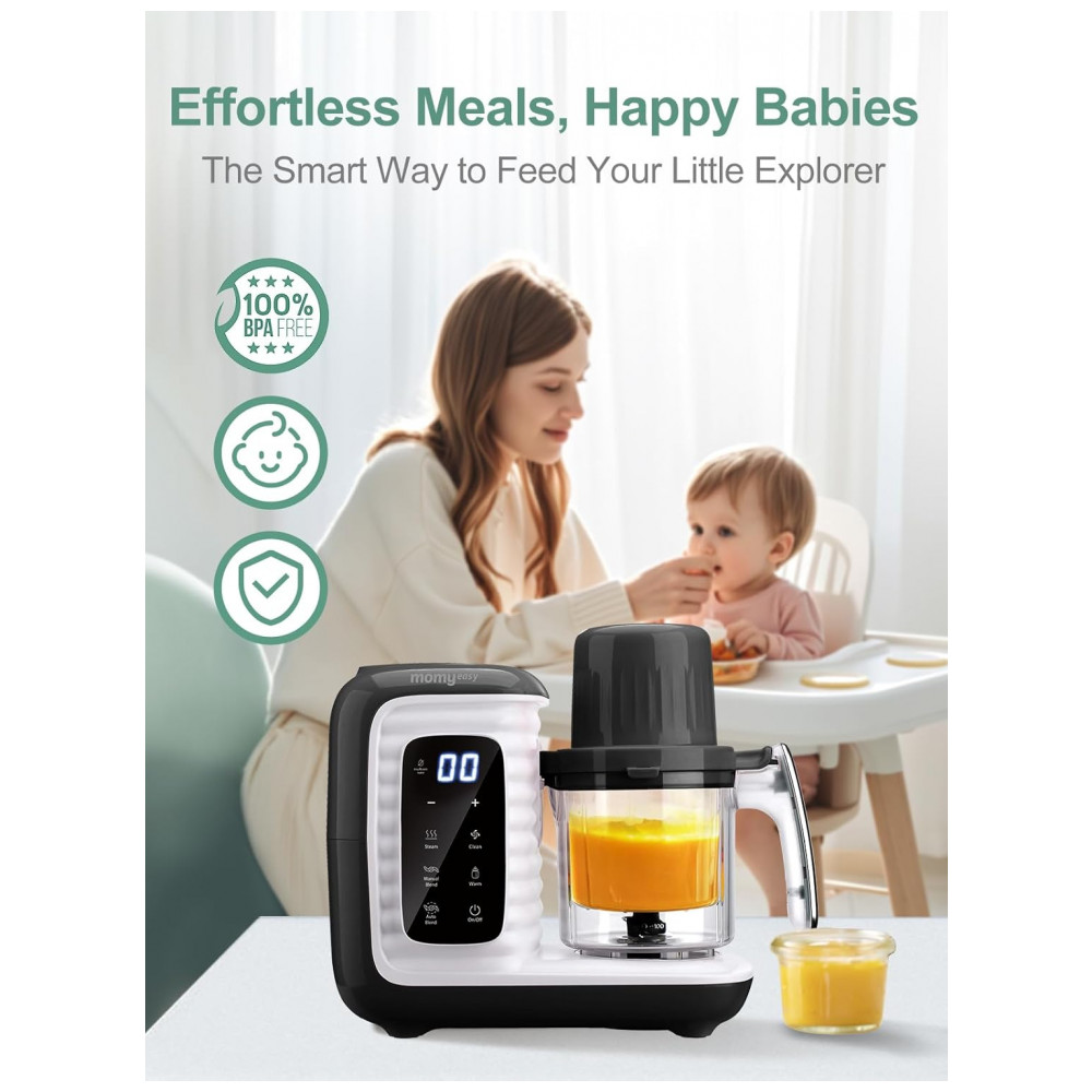 Processador de Alimentos para Bebês 10 em 1 Cozinha a Vapor Tritura e Mais 110V 300W Momyeasy Preto