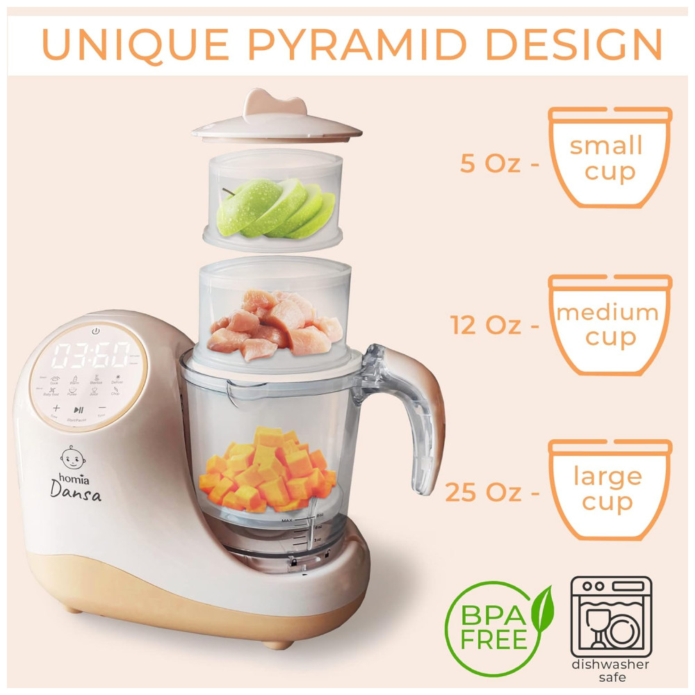 Processador de Alimentos para Bebês 8 em 1 Capacidade 600 mL HOMIA Dansa Laranja Claro