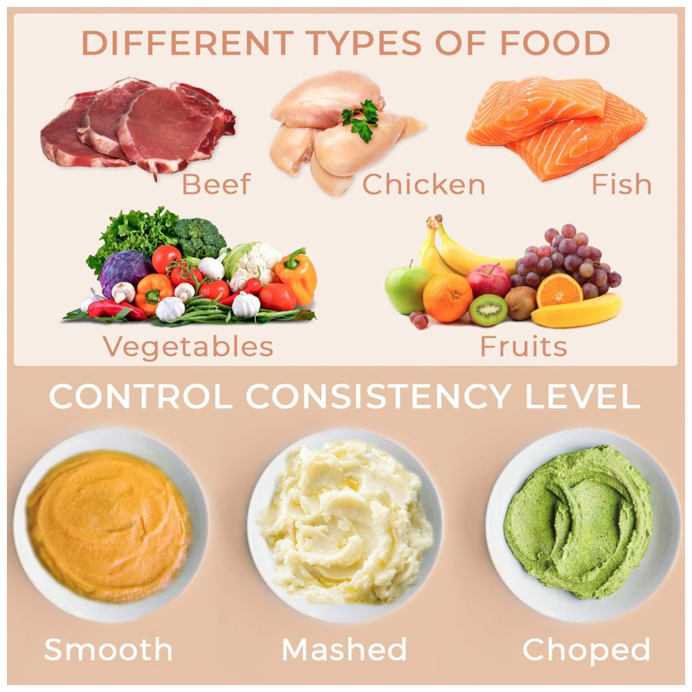 FÁCIL DE USAR A interface intuitiva do painel de controle de toque é tudo o que você precisa para preparar alimentos saudáveis e s para o seu bebê basta pressionar um botão para cozinhar a comida e, em seguida, pressionar outro botão para cortá la. A fabricante de comida para bebês faz tudo isso com facilidade