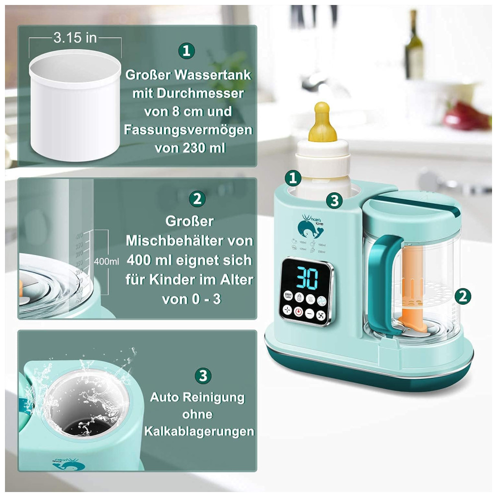 Fabricante de alimentos para bebês WHALELOVE processador de alimentos para bebês tem a função de vapor, mistura e alta eficiente mistura automática a vapor. Também é equipado com aquecimento rápido, aquecedor de leite e limpeza automática do tanque. A fabricante de alimentos para bebês é feita de materiais s, ajudando você a fazer alimentos deliciosos e nutritivos para o bebê.