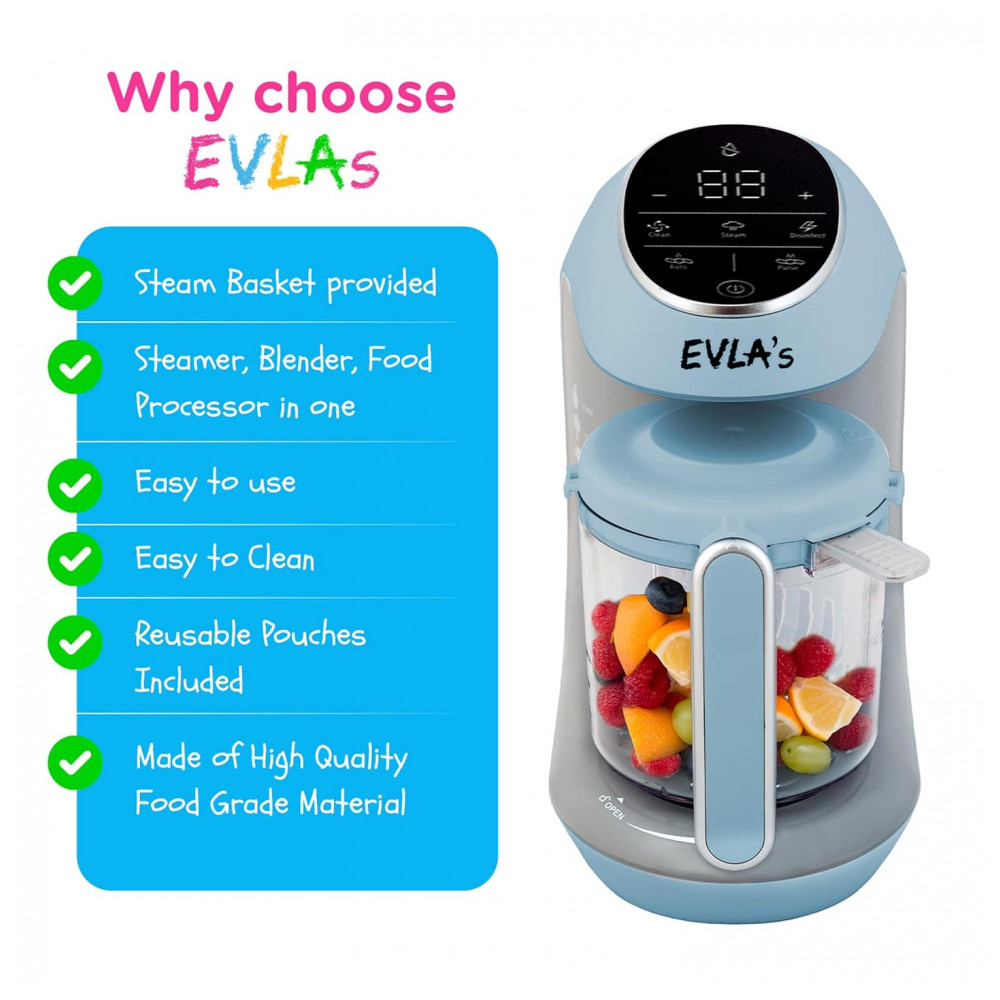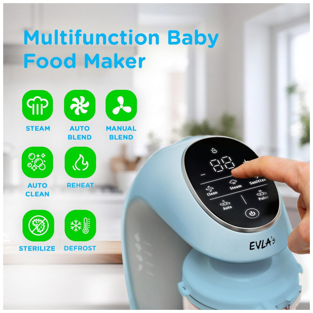 Processador de Alimentos para Bebês Multifuncional com Controle Digital 110V EVLAS Azul