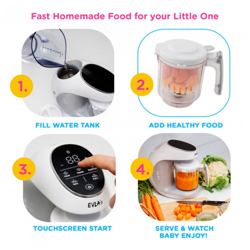 Processador de Alimentos para Bebês Multifuncional com Controle Digital 110V EVLAS Branco