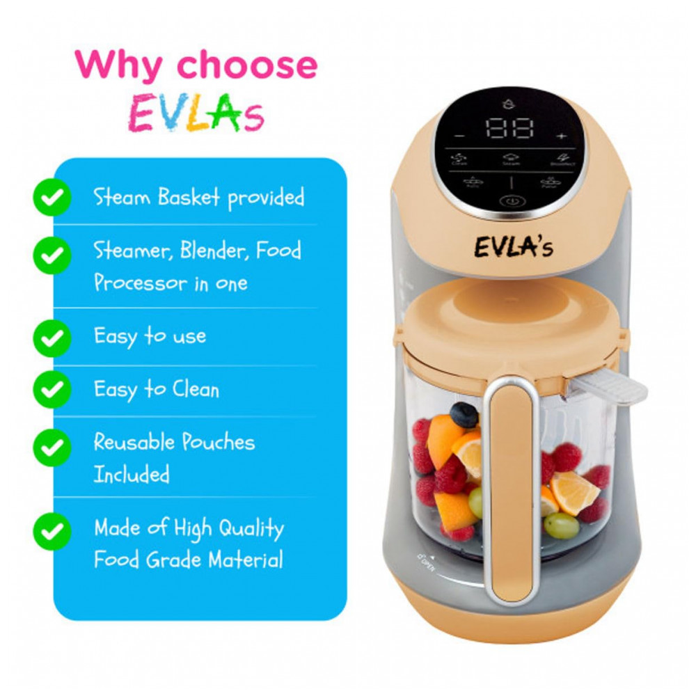 Processador de Alimentos para Bebês Multifuncional com Controle Digital 110V EVLAS Laranja