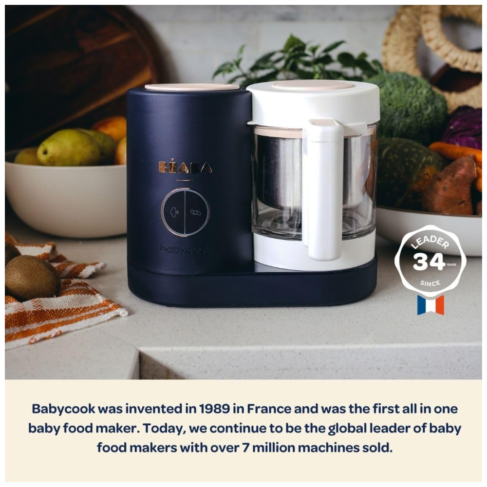 O único fabricante de comida para bebês com uma tigela de vidro e uma cesta de vapor de aço inoxidável