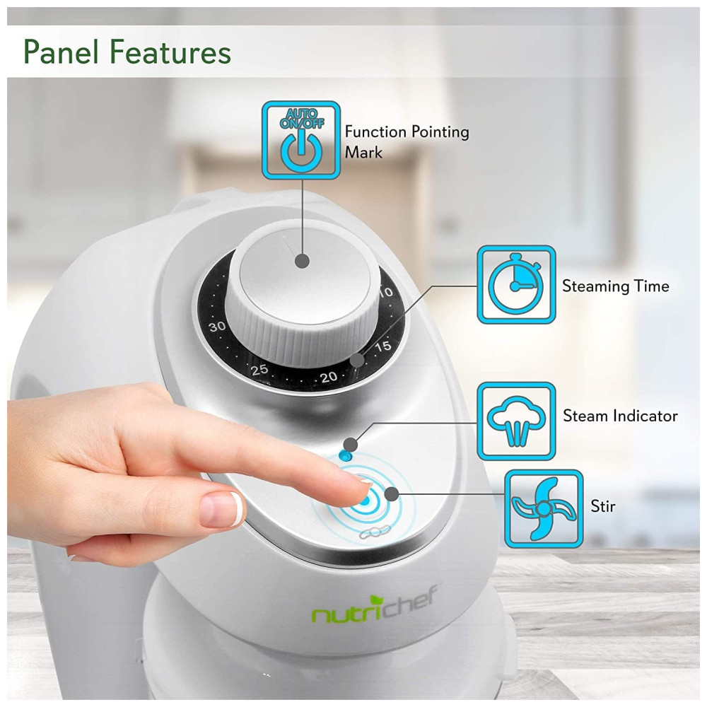 Cronômetro de vapor ajustável este fabricante de comida digital para bebês da NutriChef possui um tanque de água de enchimento fácil integrado com capacidade de 6,8 onças 200 ml para cozinhar vegetais, carne, etc.
