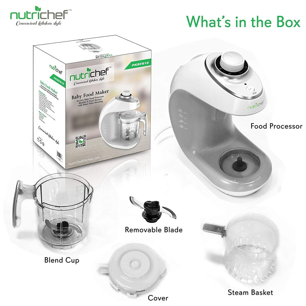 Processador de Alimentos para Bebês NutriChef para Bebês 2 em 1 300mL 430W com Temporizador ELECHOMES PKBFB18 Branco