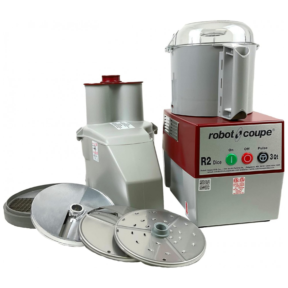 Robot Coupe R2 Dice Alimentação contínua Combinação Processador de alimentos Dicer com tigela de policarbonato de 3 litros, cinza, 120 volts