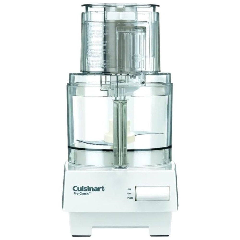 O Cuisinart Pro Classic Food Processor faz todos os seus favoritos, de salteados e saladas principais, a manteiga de amendoim e pão caseiro. Os acessórios incluem um disco de fatiamento médio de aço inoxidável, disco de trituração de aço inoxidável, lâmina de corte, pequenos e grandes empurradores, haste de disco destacável, tampa plana compacta, espátula e livro de instruções e receita