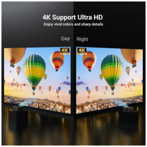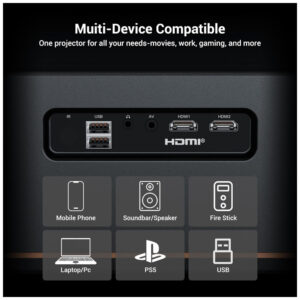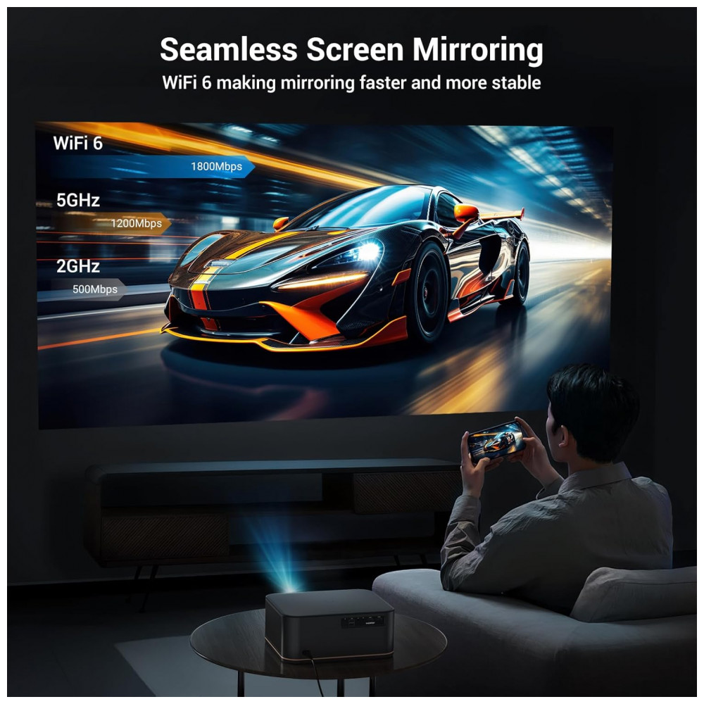 Desfrute de ajustes mais fáceis com a tela inteligente AI do HAPPRUN Projector, que apresenta foco automático e tecnologia de autokeystone 6D, proporcionando uma imagem clara e retangular em apenas 5 segundos após ligar! Este projetor 4K também conta com tecnologia de auto ajuste AI para evitar obstáculos e alinhamento automático da tela, garantindo uma visualização ideal em qualquer local. Com 800 ANSI lumens de brilho real, suporte para vídeo 4K e contraste de 200001, as imagens são nítidas e vibrantes tanto de dia quanto de noite. Com uma ampla gama de cores de 95%, cada moldura ganha vida. A qualidade sonora é garantida pelo alto-falante embutido de 8W e Bluetooth 5.2 bidirecional, oferecendo detalhes sonoros ricos e possibilitando conexão com alto-falantes externos. Com WiFi 6 ultra-rápido, sem latência, permite espelhamento sem fio entre dispositivos iOS e Android, com taxa máxima de até 9.6G bps. Equipado com HDMIx2, USBx2, AV e entrada para fone de ouvido de 3,5mm, o projetor é compatível com diversos dispositivos. Com tela de 300″ e função de zoom de 50%, atende às necessidades de diferentes espaços. Ideal para cinema em casa, noites de filmes ao ar livre, jogos, festas, eventos musicais, entre outros. Aproveite o entretenimento sem interrupções!