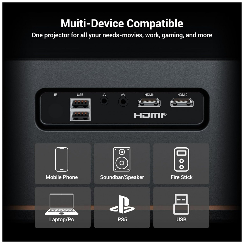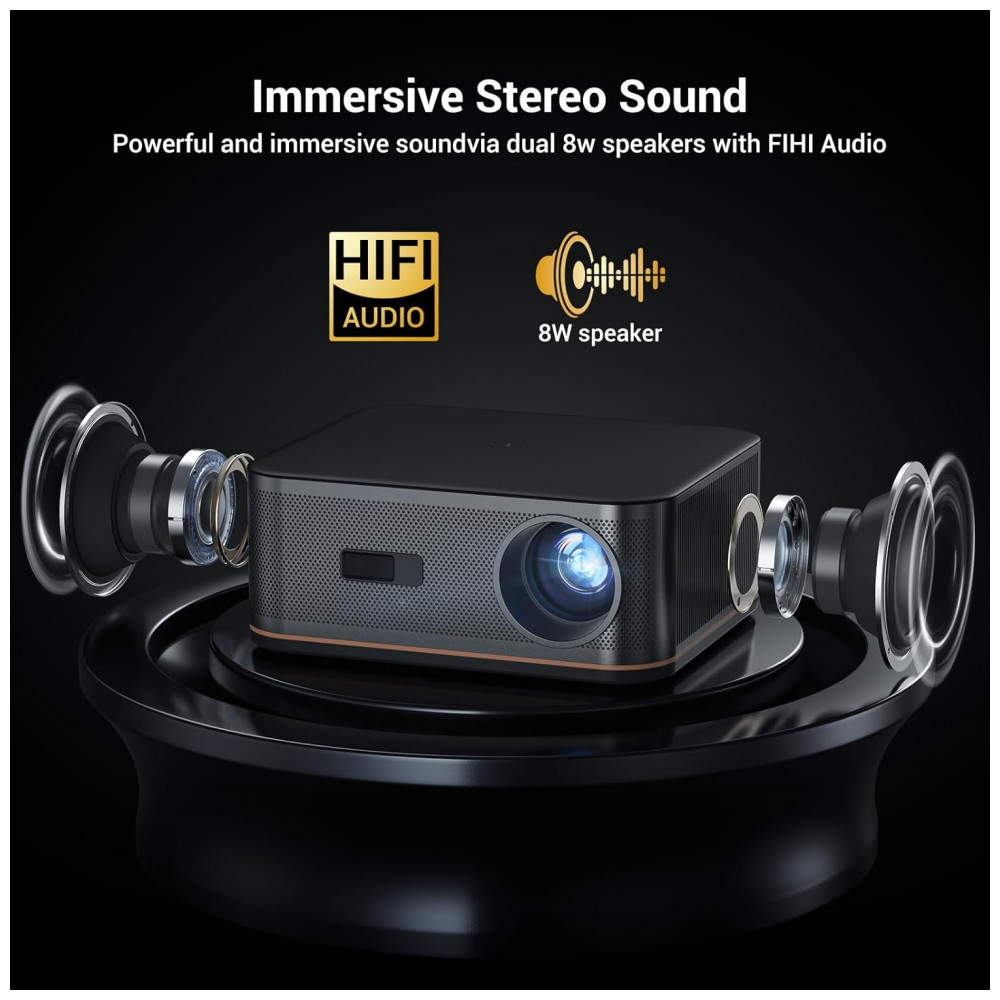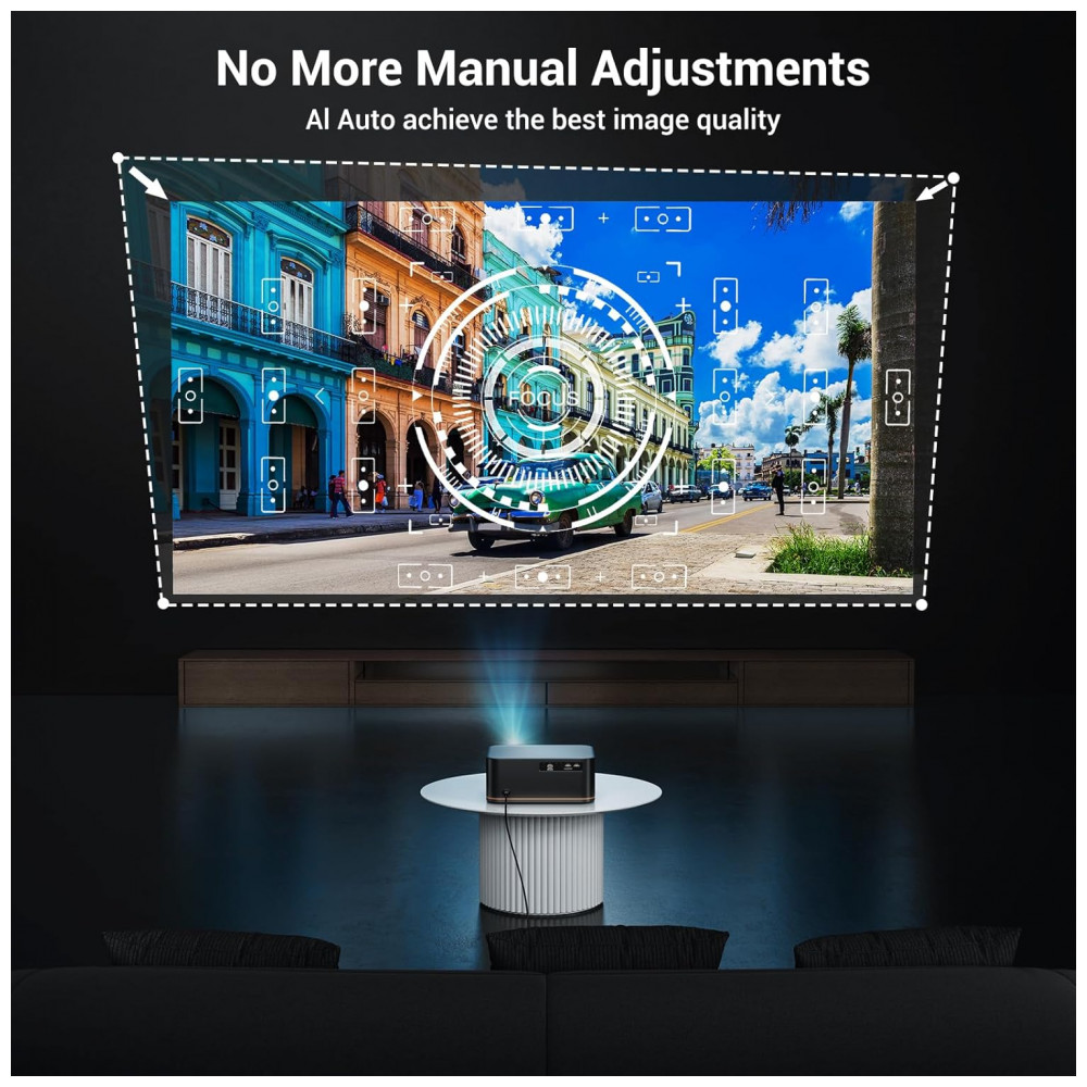 Projetor 4K Full HD de Alta Luminosidade com WiFi e Bluetooth HAPPRUN Cinema em Casa com Foco Automático Tela de 300 para Ambientes Internos e Exter