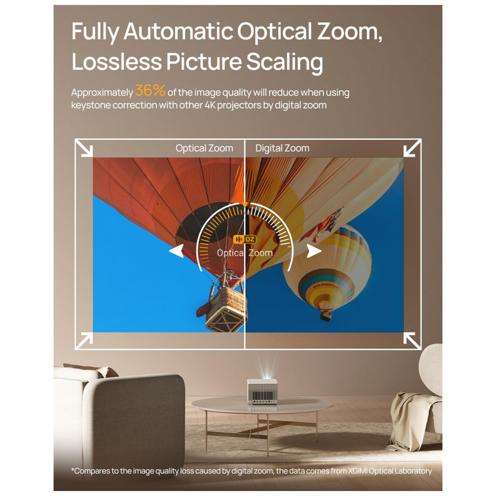 O projetor 4K XGIMI Horizon Ultra é um modelo para home theater, jogos, educação e uso corporativo, com resolução 3840 x 2160 e brilho de 2300 lúmens ISO, indicado para telas de até aproximadamente 200″. A combinação de compatibilidade com Dolby Vision, suporte a HDR10 e HLG, gama de cores DCI‑P3 em torno de 95,5% e alta taxa de contraste proporciona imagens detalhadas, com boa profundidade de preto e fidelidade de cores em diferentes condições de iluminação.