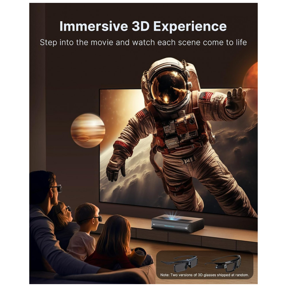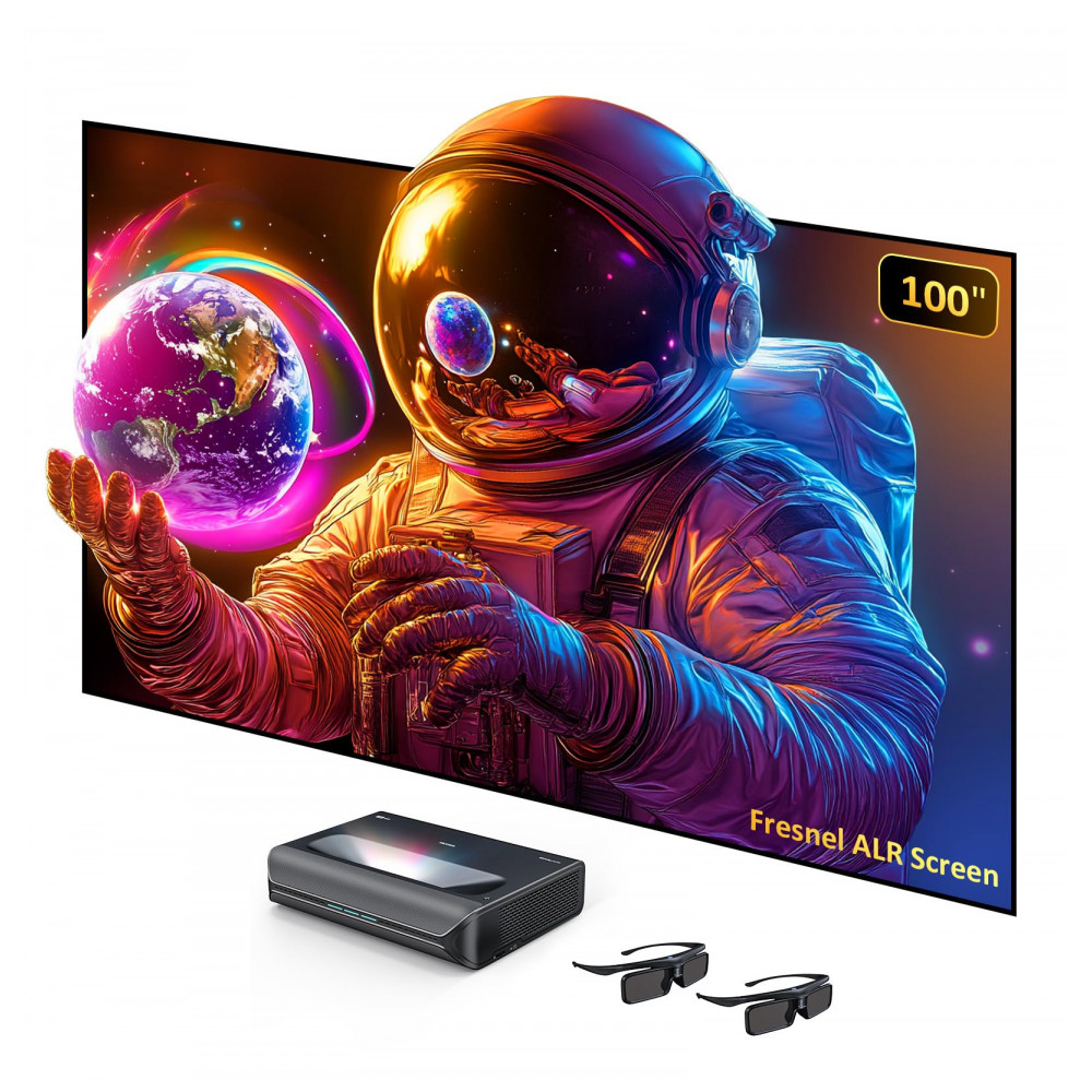 Tipo de produto: Conjunto de projetor a laser 4K de tiro ultra curto com tela ALR Fresnel fixa e óculos 3D ativo