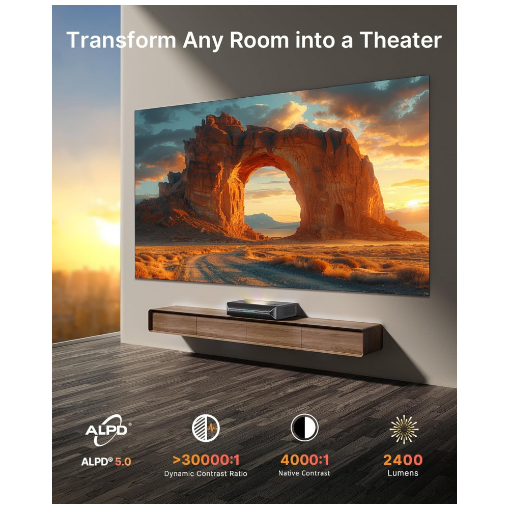 Tipo de projetor: Projetor a laser 4K tri‑color ultra short throw (UST)