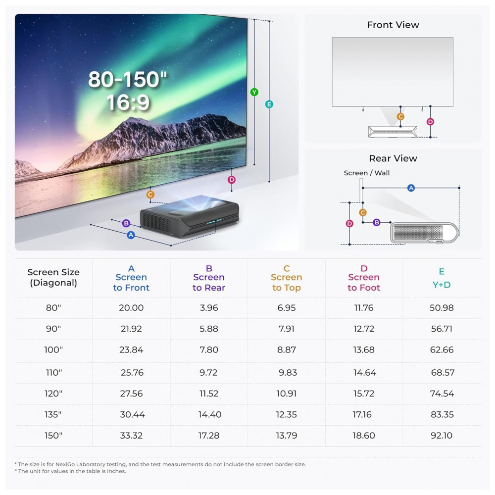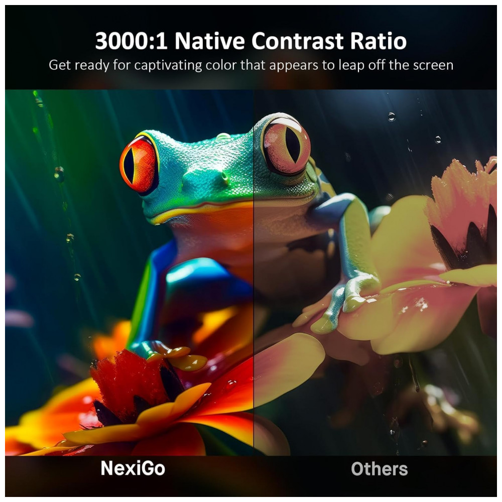 O NexiGo Aurora Pro é um projetor a laser 4K tri‑color de ultra curta distância em versão renovada, projetado para uso como Laser TV em home theater e ambientes de entretenimento residencial, com projeção de tela grande a partir de pequena distância da parede. A tecnologia ALPD 4.0 RGB+ oferece brilho de 2.400 lúmens, relação de contraste nativa de 3.000:1 e suporte a ampla gama de cores, com vida útil estimada em 25.000 horas da fonte de luz.