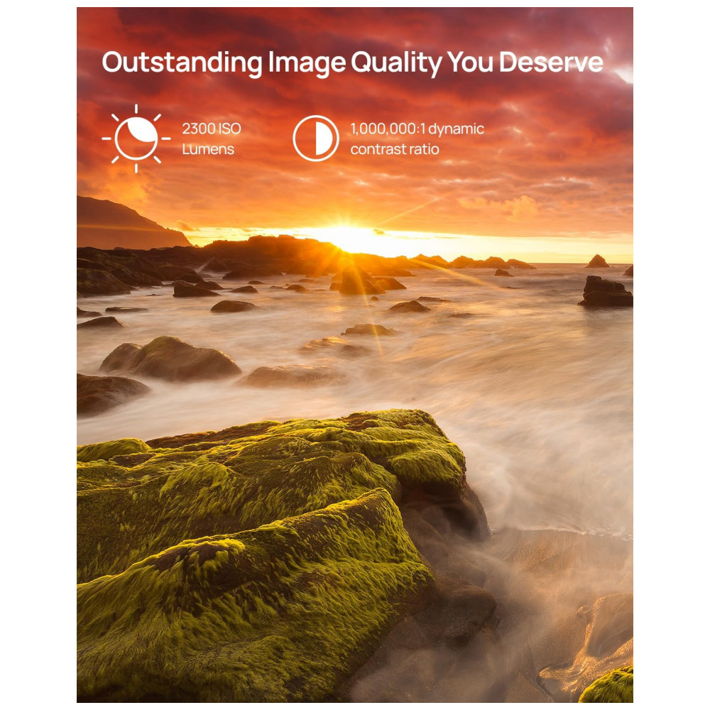 O projetor a laser ultra short throw XGIMI Aura 2 foi desenvolvido para aplicações de home cinema, oferecendo resolução 4K UHD e projeção de grandes imagens a partir de curta distância da superfície de projeção. Com brilho de 2300 lúmens ISO, contraste dinâmico de 1.000.000:1 e cobertura de 99% da gama de cores DCI-P3, entrega imagens nítidas e com alta fidelidade de cores em ambientes residenciais.
