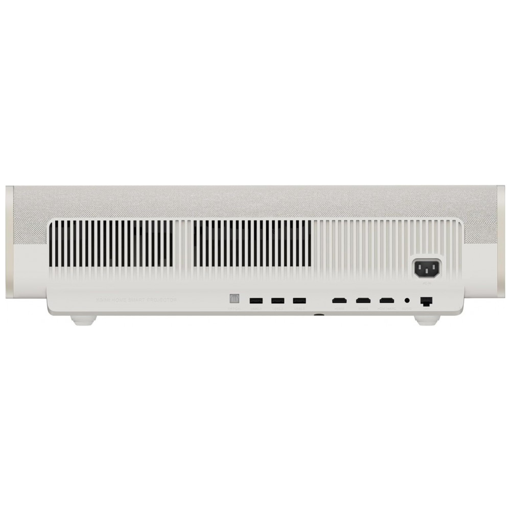 O projetor utiliza sistema inteligente baseado em Google TV ou Android TV, com acesso a aplicativos de streaming compatíveis, controle por voz e conectividade em rede via Wi‑Fi e porta Ethernet. As opções de conexão incluem entradas HDMI, portas USB, saída de áudio analógica e saída óptica digital, possibilitando uso com consoles de jogos, receptores AV, players multimídia e outros equipamentos.